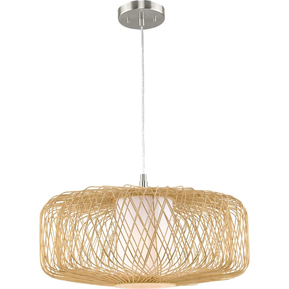 Handcrafted rattan shade is ideal to complement modern organic and globally influenced décor.
