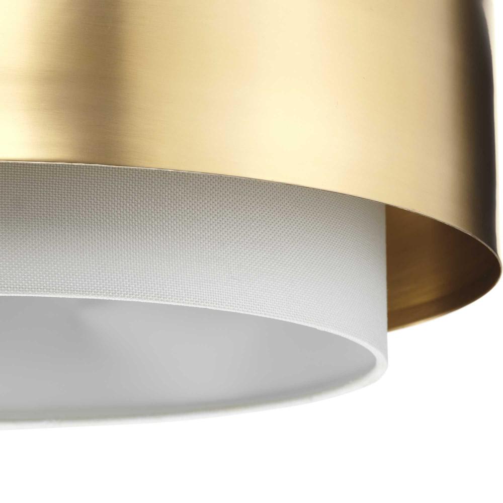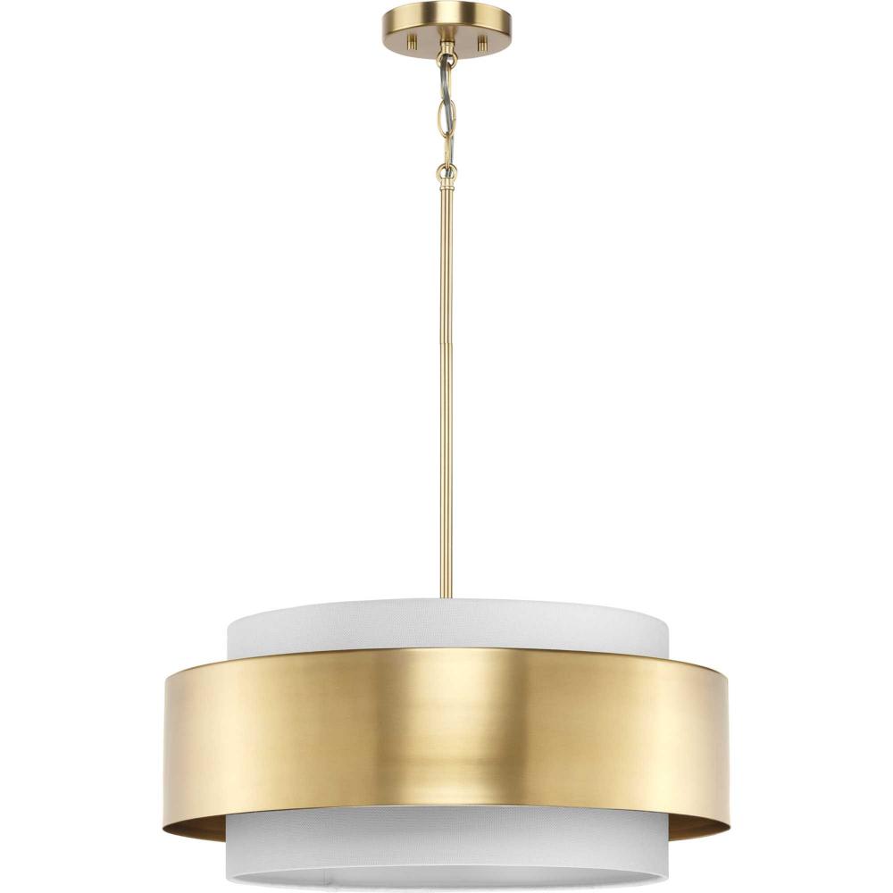 The Silva Collection uses a dramatic contrast of finish and material to present a captivating design. A white linen shade encompassed by a stunning metallic drum coated in a beautiful brushed bronze finish establishes a clean, modern, uplifting statement. This fixture is part of the Progress Lighting Design Series, a lighting collection offering fashionable styles and affordable luxury lighting for the home.