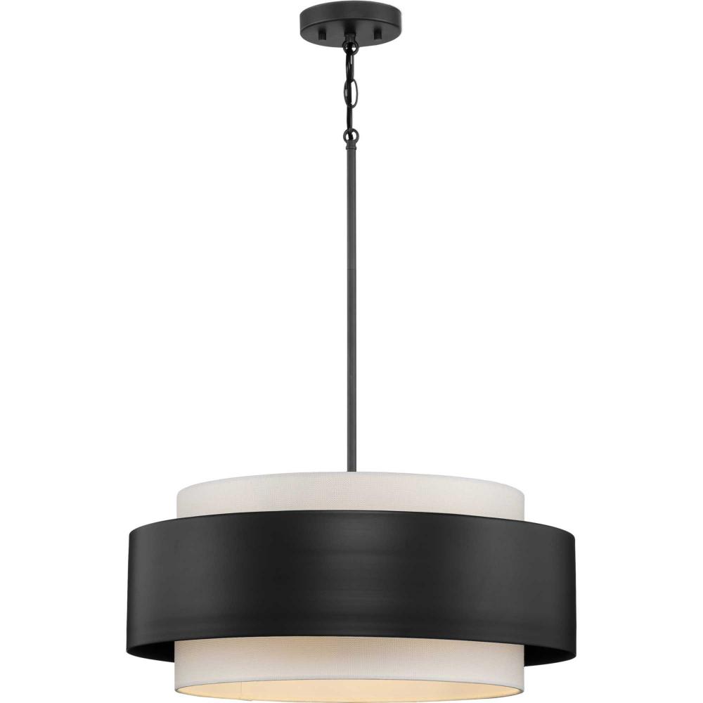 The Silva Collection uses a dramatic contrast of finish and material to present a captivating design. A white linen shade encompassed by a stunning metallic drum coated in a crisp matte black finish establishes a clean, modern, uplifting statement. This fixture is part of the Progress Lighting Design Series, a lighting collection offering fashionable styles and affordable luxury lighting for the home.