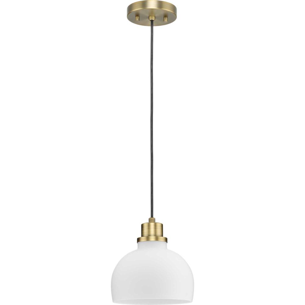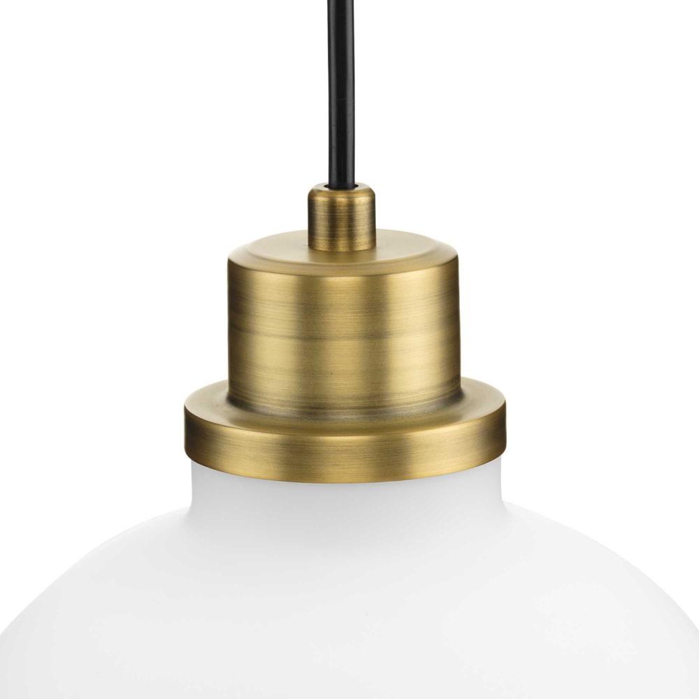 The clean lines of a domed glass diffuser topped with a vintage metal cap finished in subtle vintage brass give a nostalgic look to the Garris Collection. A simple cord suspension and a etched glass shade offers a stylish modern touch to transitional and modern farmhouse interiors. Install singly or in multiples to provide crisp task illumination to kitchen islands, bars and bedrooms.