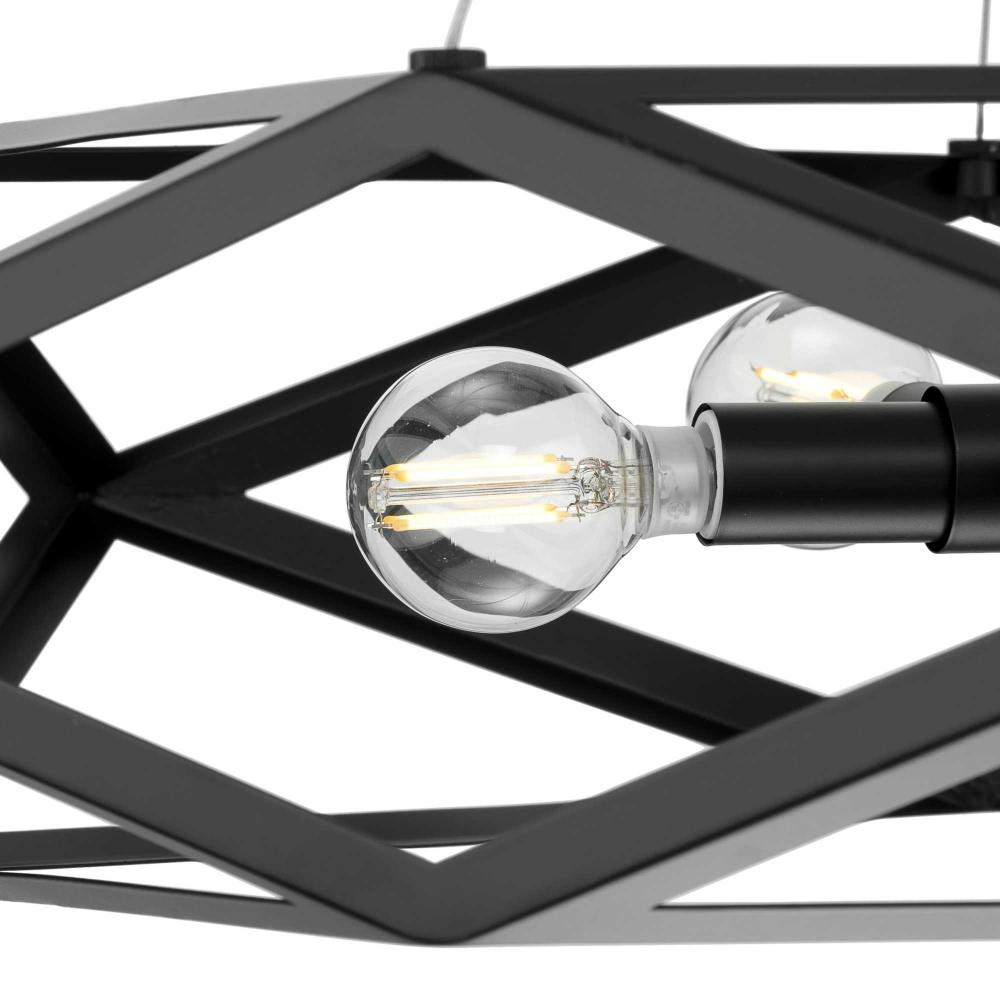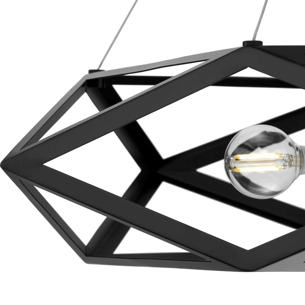The pendant features painted black steel blending together in an esoteric conjunction, creating a prominent geometrical surround