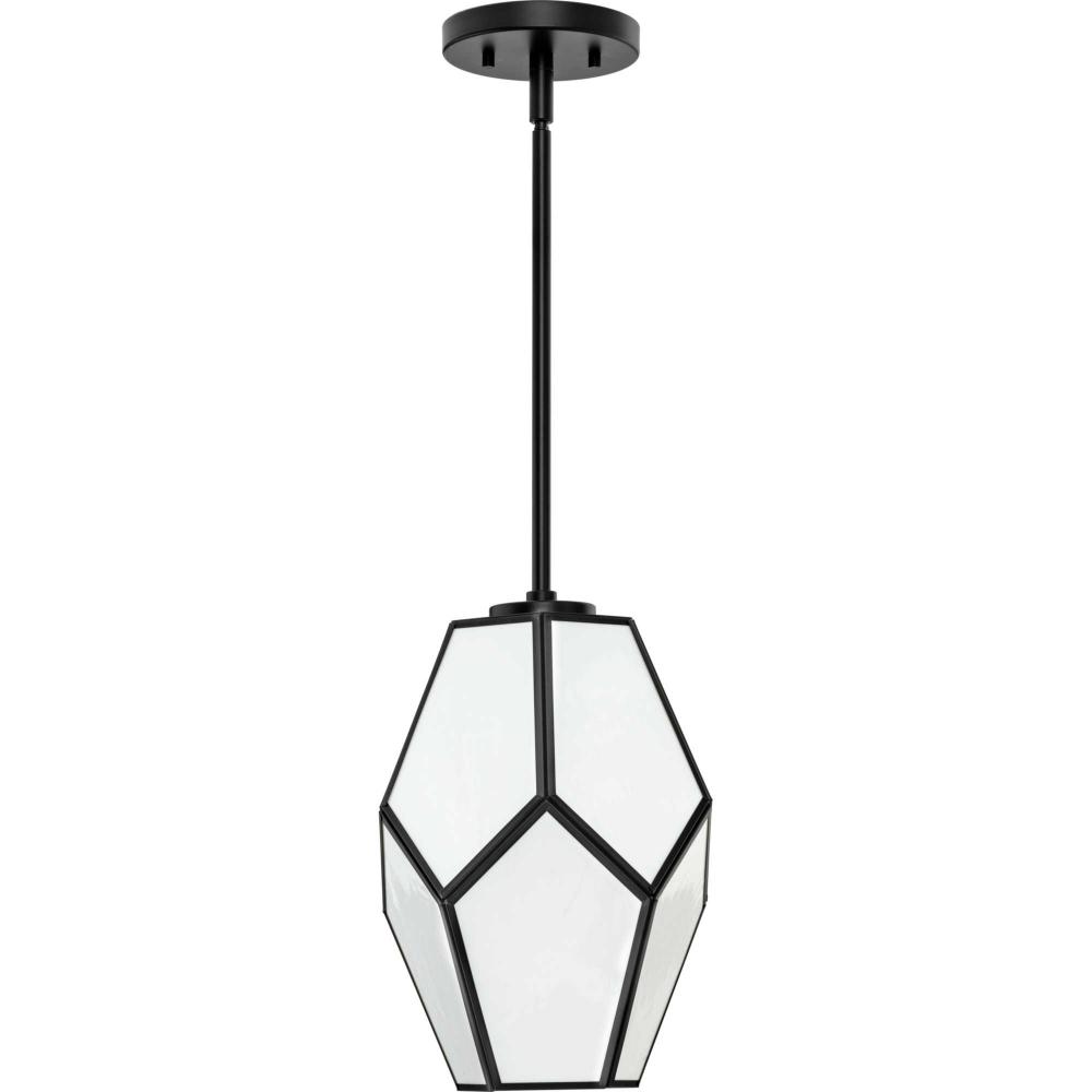 Charmingly distinctive, the Latham Collection glows from within. The Pendant Light is composed of a geometric framework finished in Matte Black that features an artful array of handmade white art glass. Inspired as a modern expression of an origami lantern, the light delivers striking illumination to spaces below.