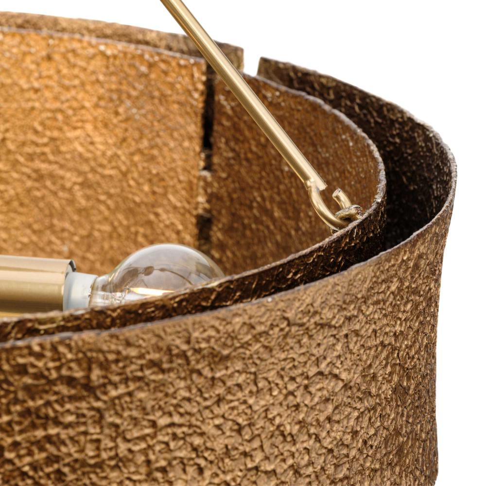 The light's artisanal, textured elements offer a vintage feel in contemporary rooms