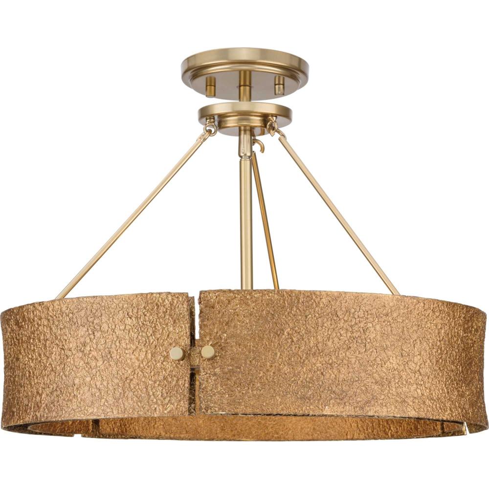 The Lusail Collection showcases a sensuous texture that brings forward a luxurious appearance. Rustic sensibility contrasts beautifully with the sleek golden elements that form the modernist frame.This fixture is part of the Progress Lighting Design Series, a lighting collection offering fashionable styles and affordable luxury lighting for the home.