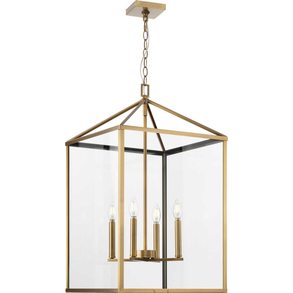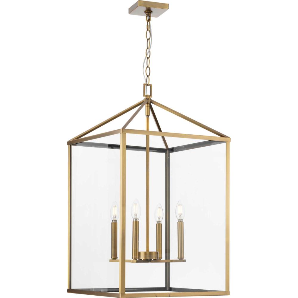 The Hillcrest Foyer Light interprets the traditional carriage light for the modern age, giving it a fresh update with a refined angular silhouette. A classic candelabra base is suspended within a clear beveled glass frame.Clear illumination is cast from its airy design.