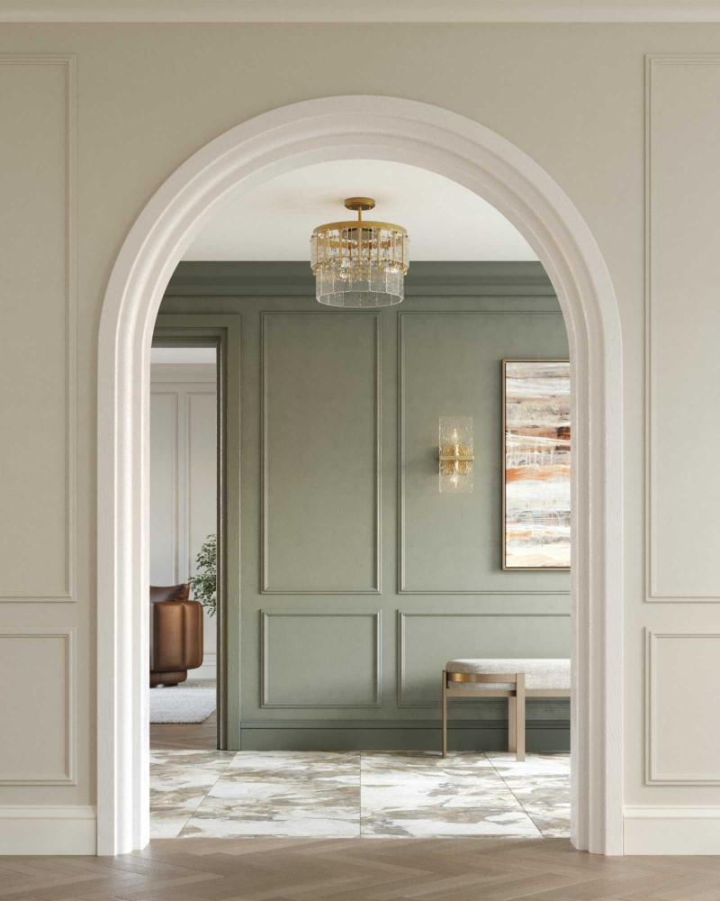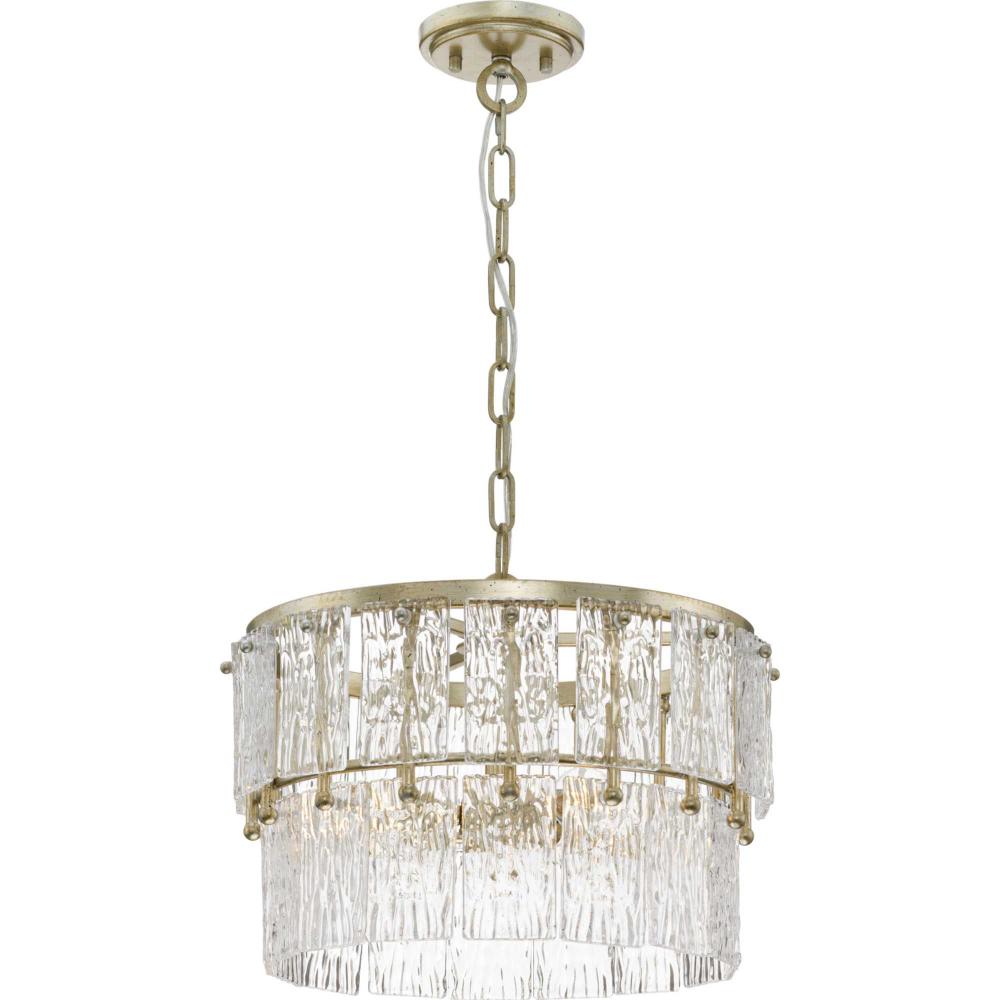 The fixture's gleaming gilded silver finish provides an elegant aesthetic to indoor rooms