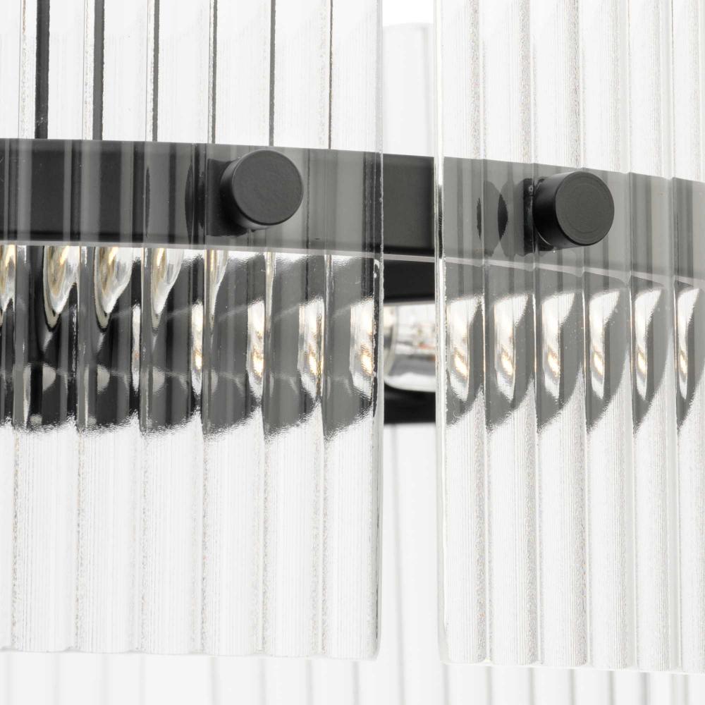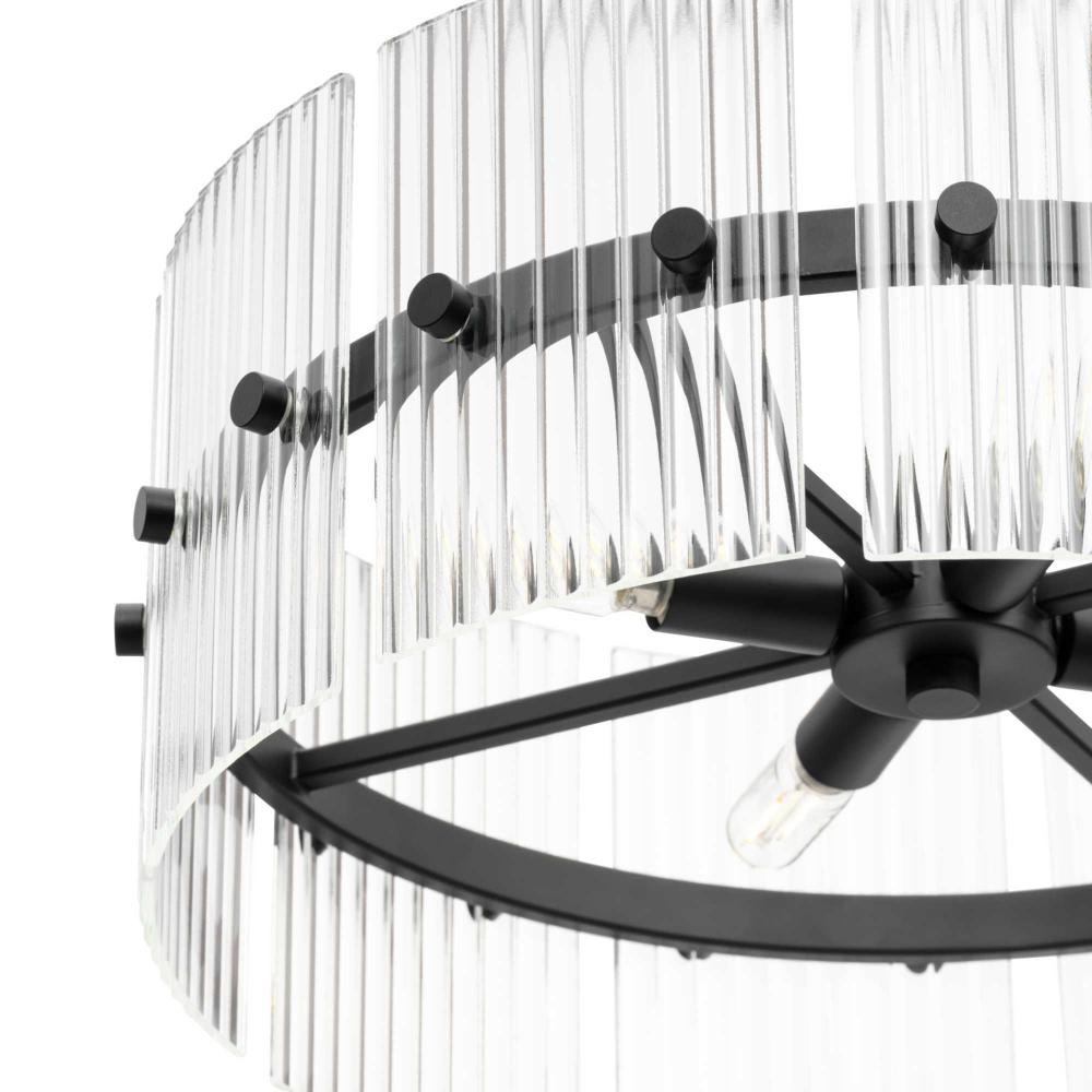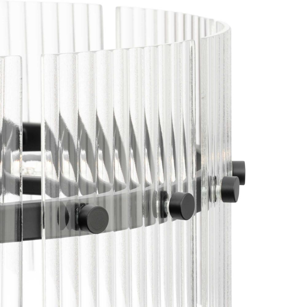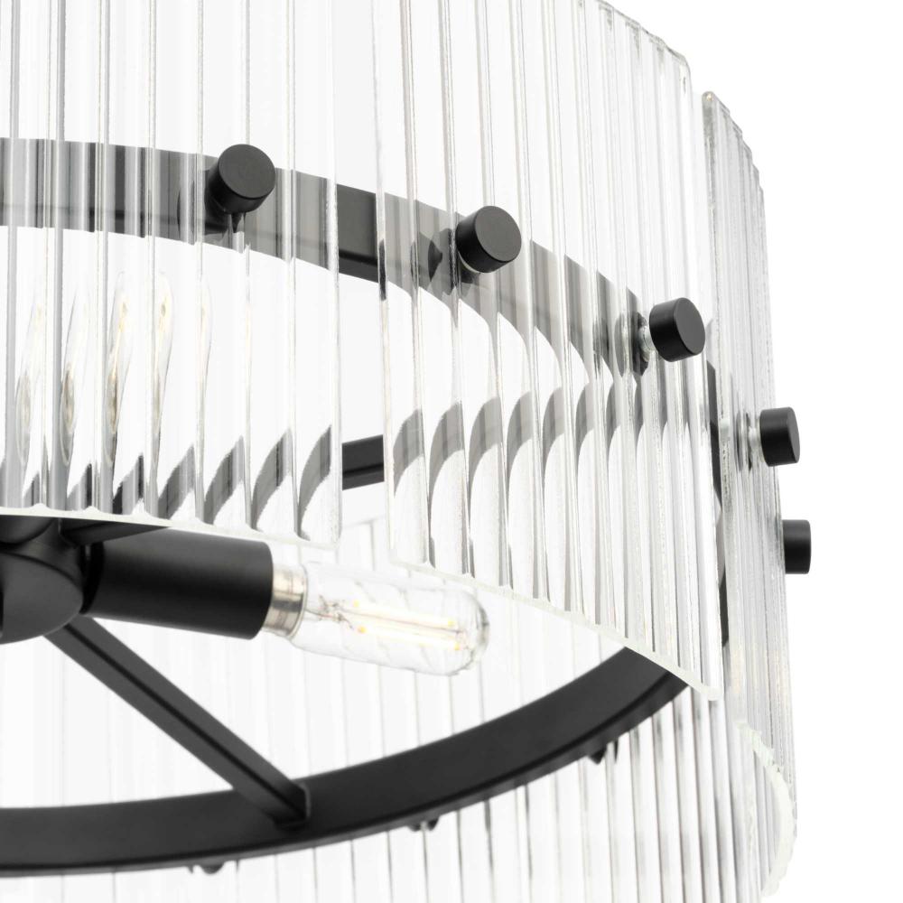 The Seville Collection ensconces light within a translucent design. A series of finely ridged architectural glass elements envelop a central frame finished in Matte Black to diffuse an ambient glow throughout the room. This fixture is part of the Progress Lighting Design Series, a lighting collection offering fashionable styles and luxury lighting for the home.