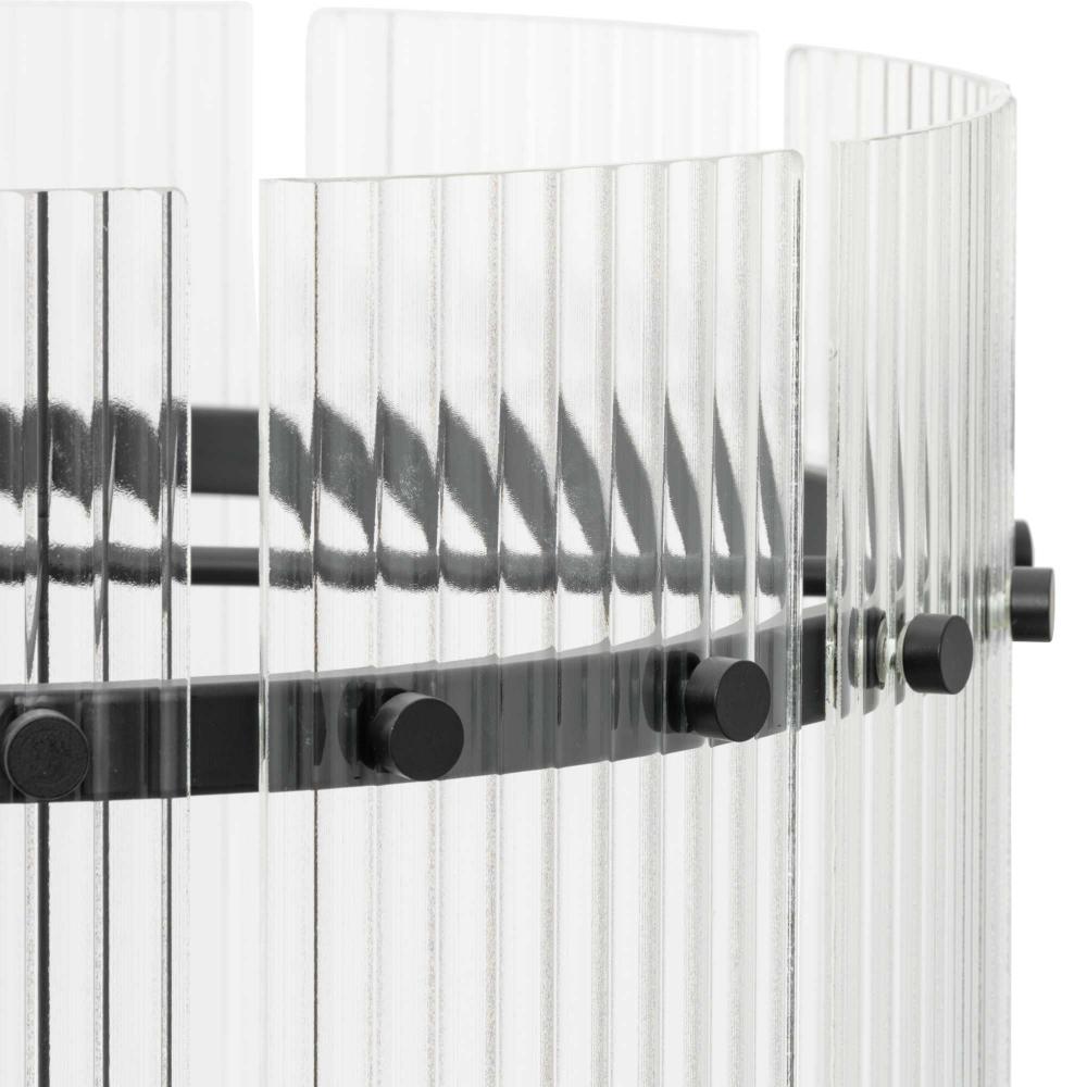 Ridged glass cylinders diffuse the light, casting a soft glow