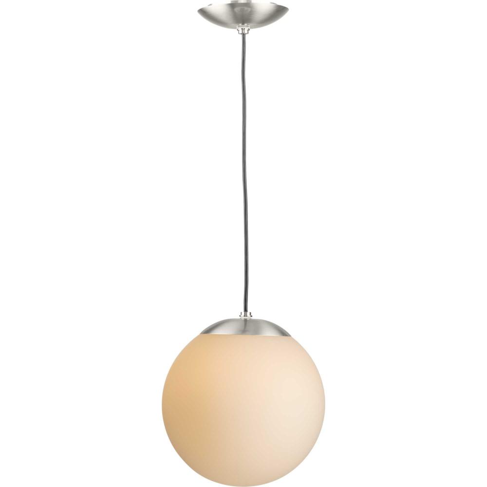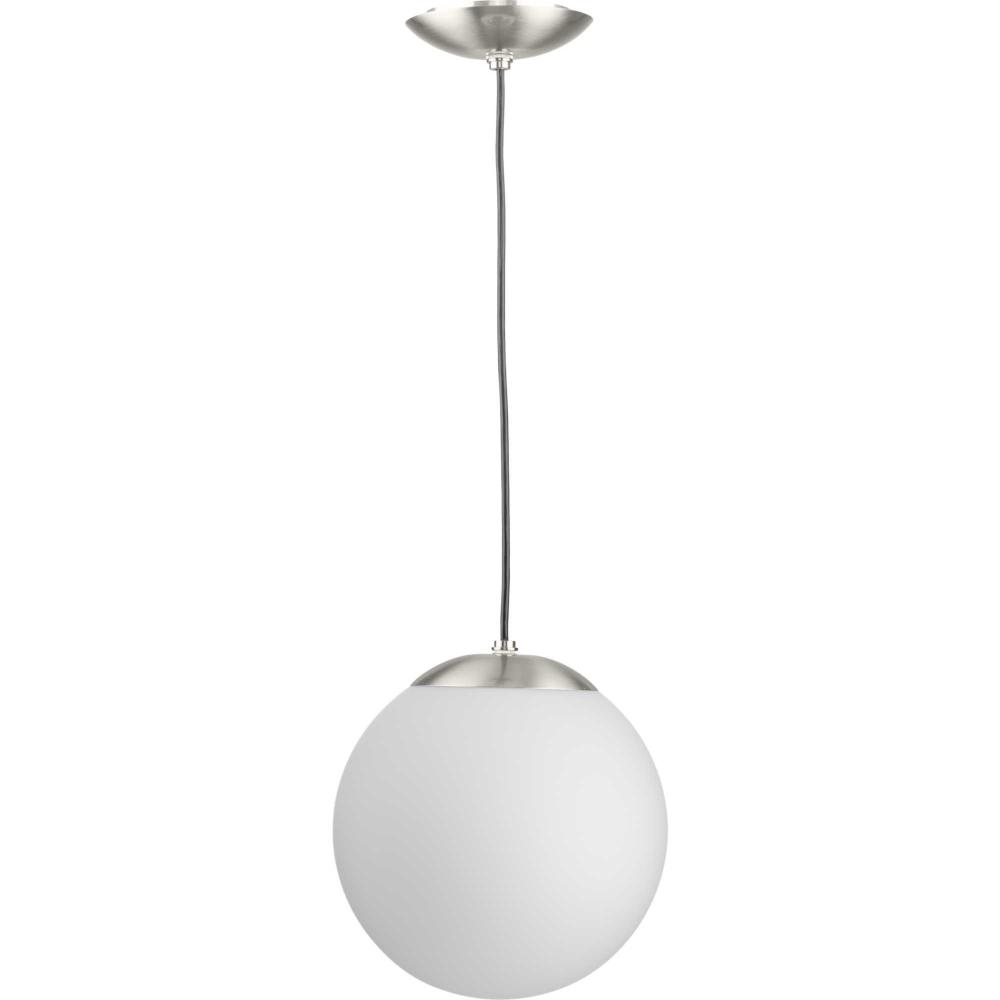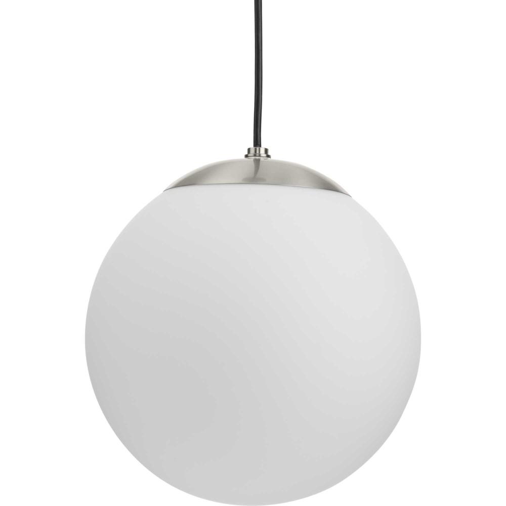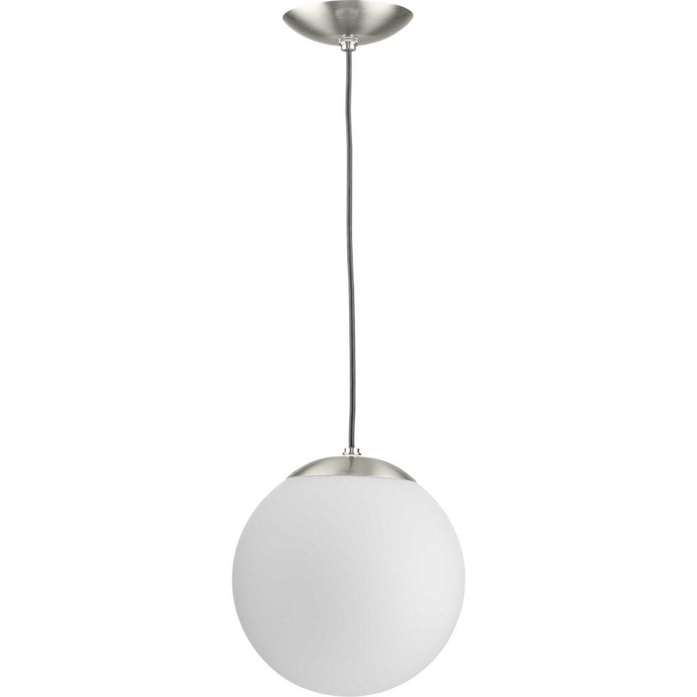 Embrace a statement-making lighting design with the Atwell Pendant Light. A light source glows from within an opal glass globe shade, fostering a soft and enduring design. The metal cap and light base are coated in a beautiful brushed nickel finish that accentuates the design's modern aesthetic. The light hangs from a flexible black cord that can be adjusted for height to meet your unique design needs.
