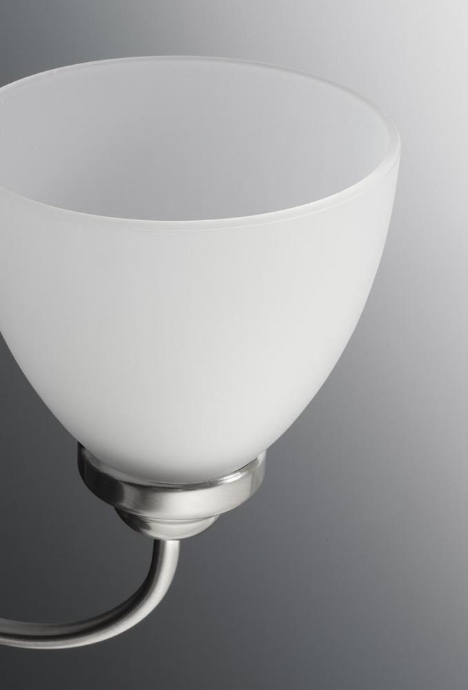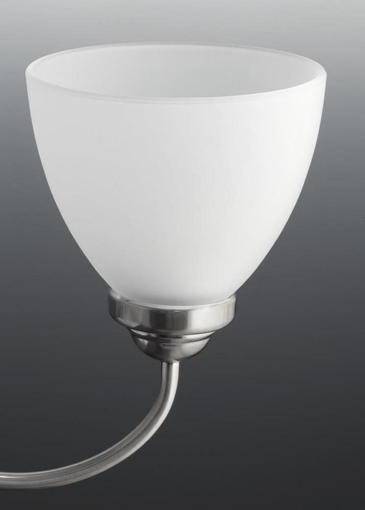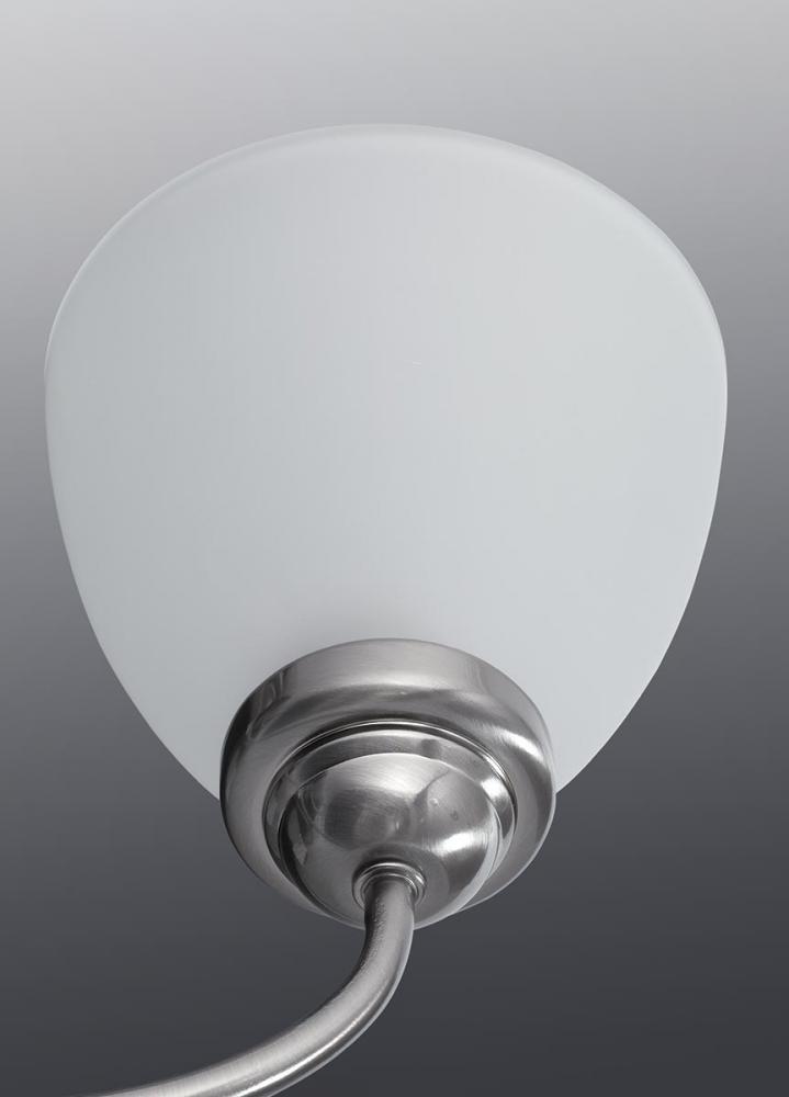 Plated Brushed Nickel finish.;Etched glass shades provide satisfying illumination.;Versatile design.;Includes two 6" stems and 42 in of chain.