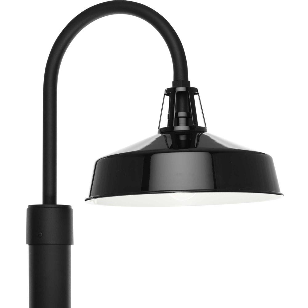 A fun take on the traditional warehouse shade, Cedar Springs can be a stylish addition to any indoor or outdoor space. Offered in a generous size and featuring a black gooseneck arm style and black shade, this classic Farmhouse fixture serves as an eye-catching addition to a variety of facades. Dark Sky Friendly.