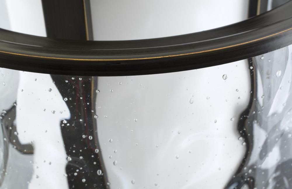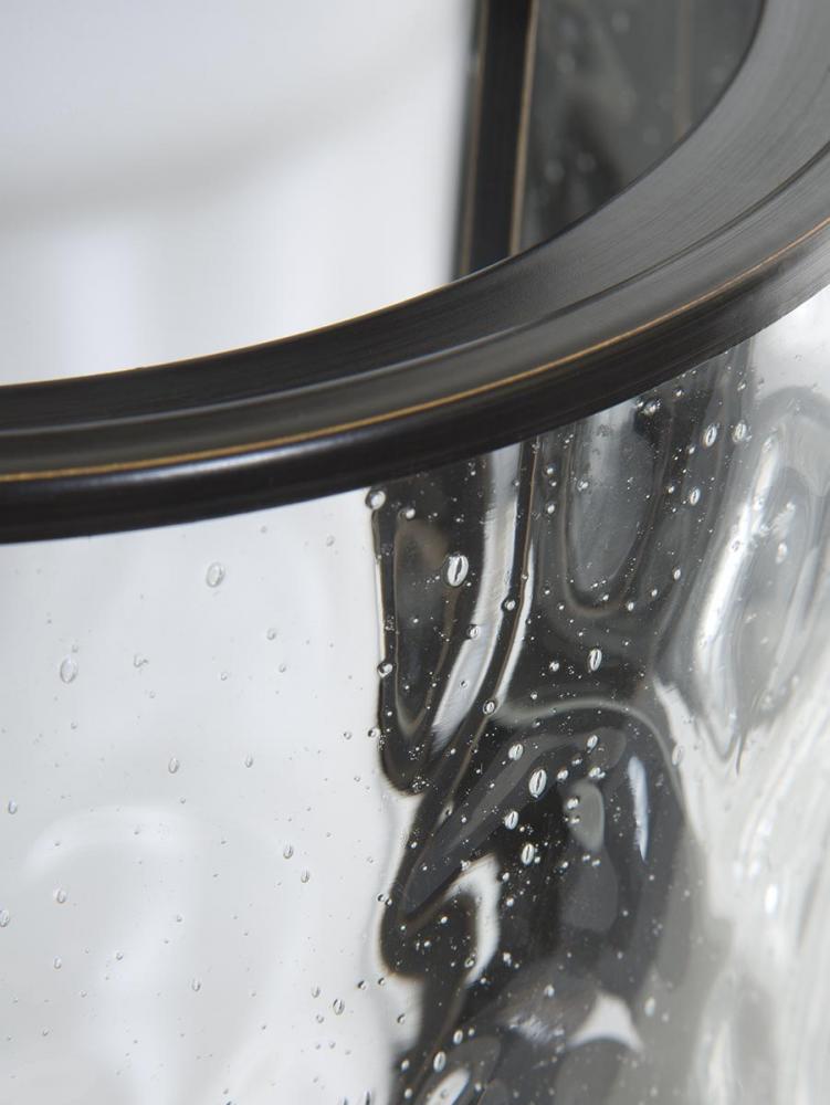 Antique Bronze finish.;Water seeded glass curved panels.;Quill-scrolled arms and decorative finials.