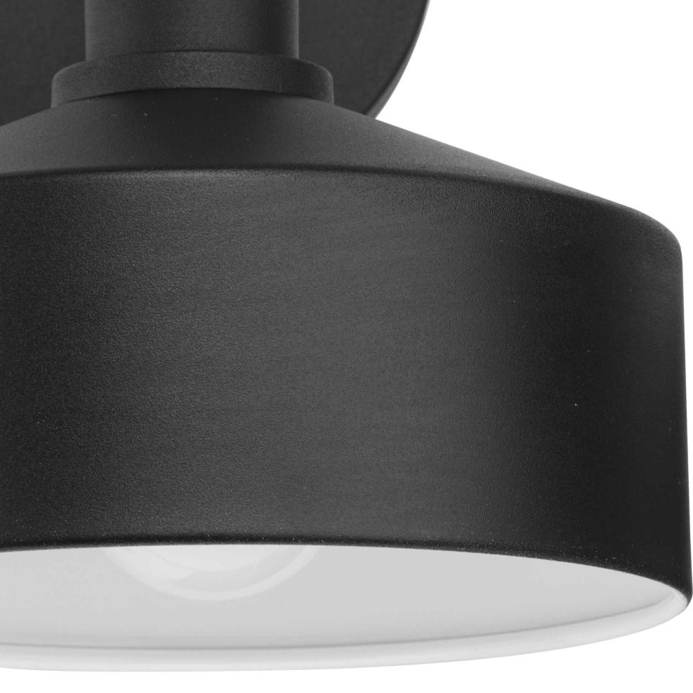Offering signature industrial appeal with modern flair, the Precinct Collection features an architectural bracket design holding a metal, warehouse-style shade finished in textured black. The wall lantern offers a functional style that complements porches, patios and other outdoor areas in urban industrial and transitional settings. Warm illumination is cast on surfaces below from this Dark Sky friendly fixture. It is cULus wet location listed for use where water may be present, with a one-year warranty to guarantee your complete satisfaction. Progress Lighting products are designed for exceptional quality, reliability, and functionality.