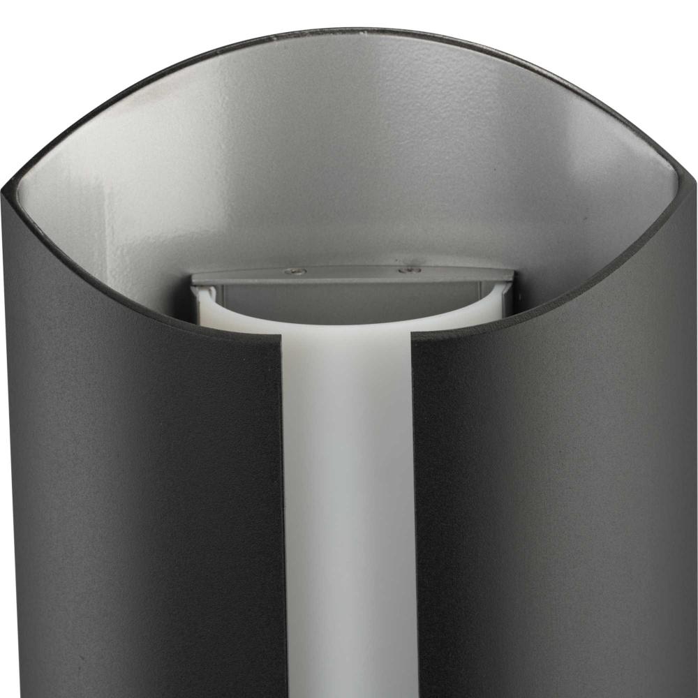 The light's cylindrical frame is finished in classic black