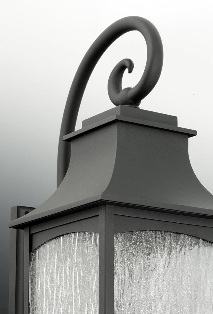 Traditional French country styling.;Classic and formal clear water seeded glass.;Powder coat finish.