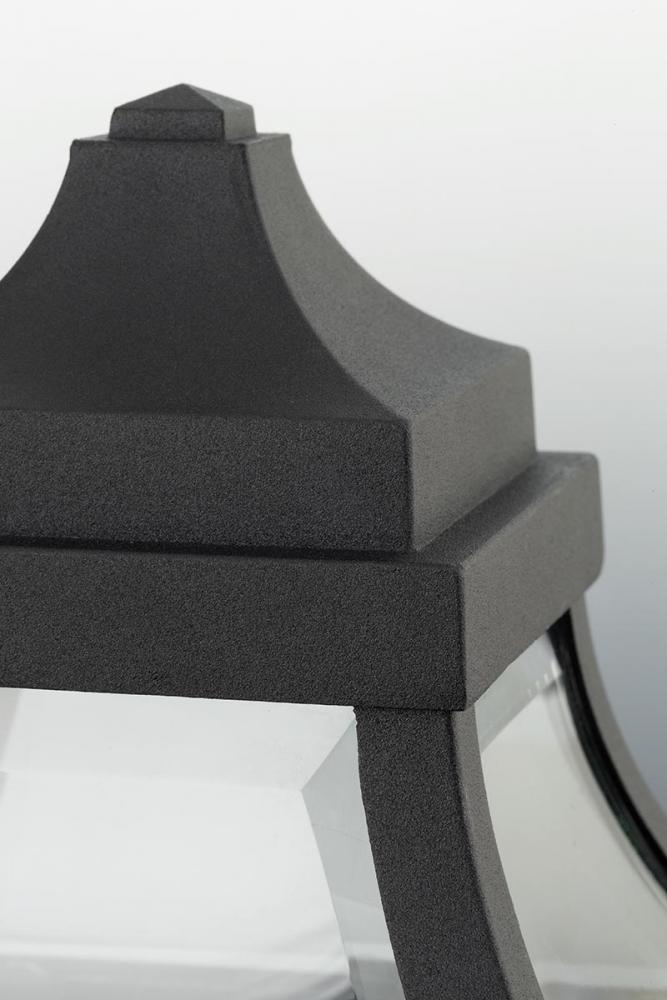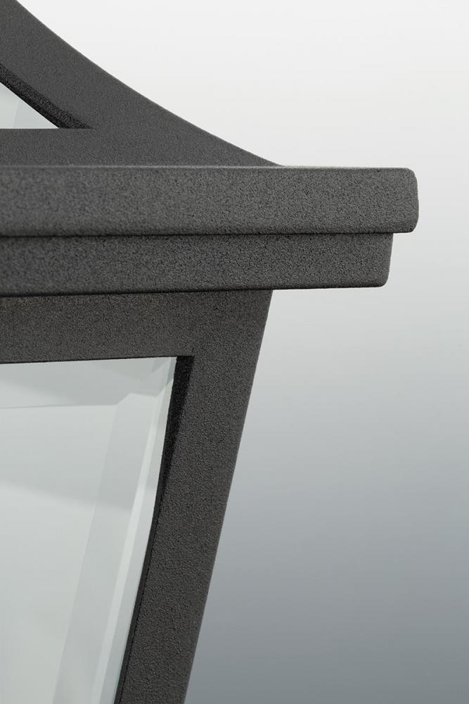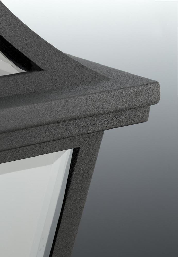 Black finish.;Clear beveled glass panels.;Traditional form.;Intriguing visual effect.;Meets California Title 24 high efficacy requirements for outdoor use only.;623 lumens 69.2 lumens/watt per module (source);3000K color temperature, 90+ CRI.