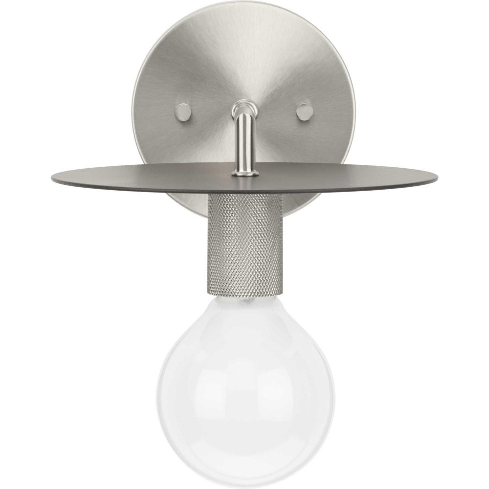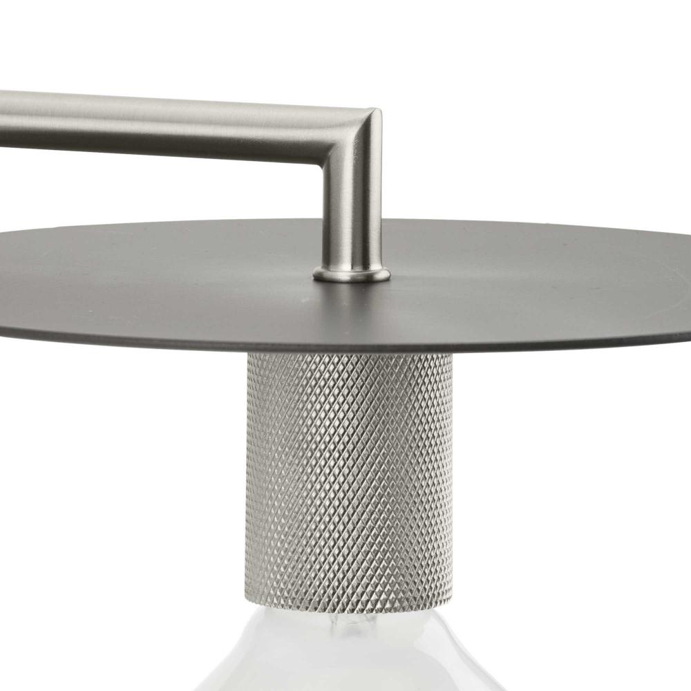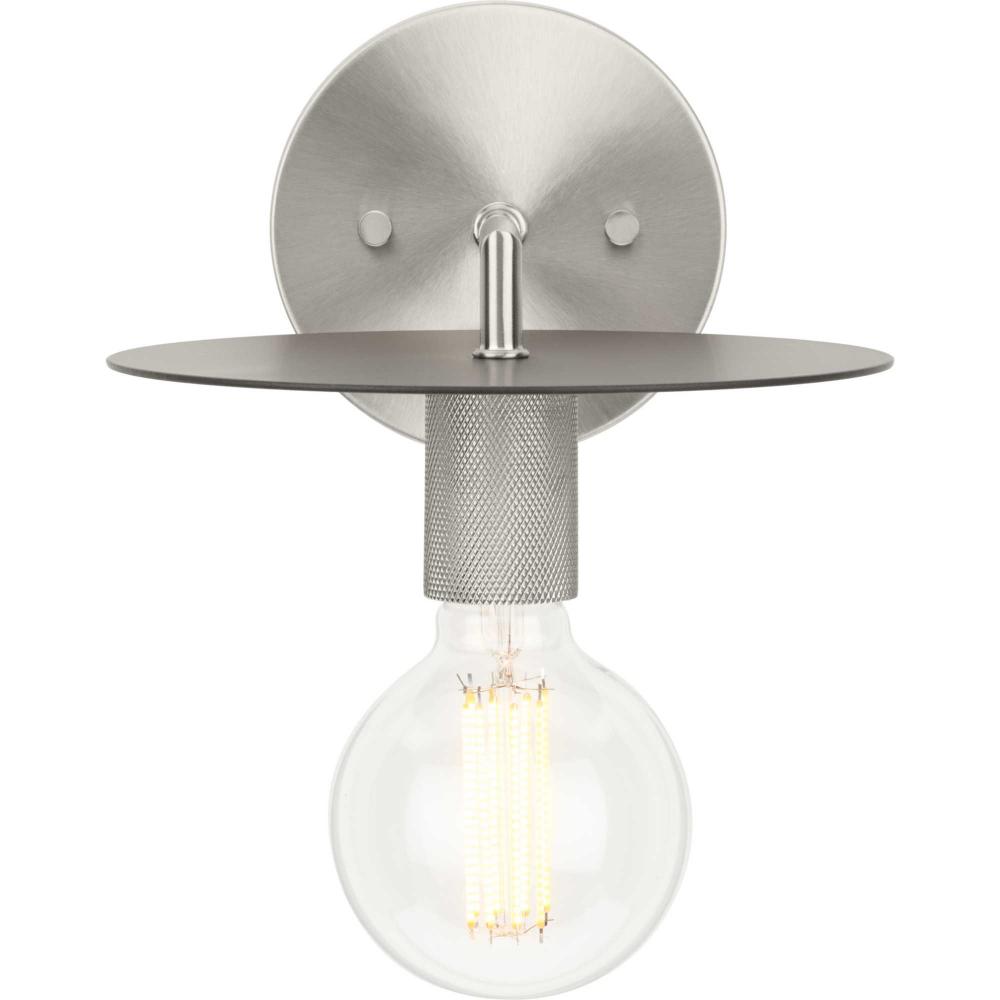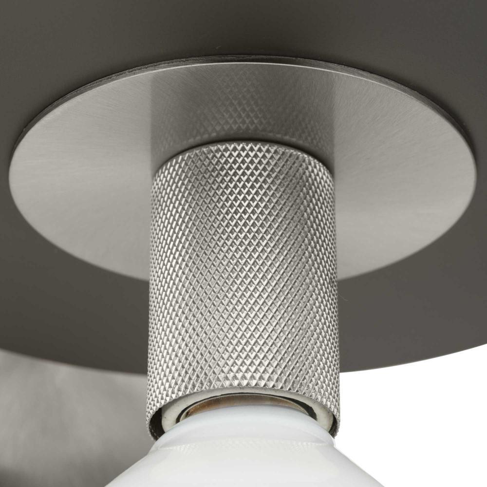 An intriguing flat disc shade forms the basis of the Trimble Collection, whose mid-century modern inspiration is perfect for open spaces in mid-century modern and luxe industrial settings. A two-toned finish on the shade features subtle brushed nickel and crisp graphite, plus a knurled metal lamp socket and round backplate are coated in brushed nickel providing additional rich visual interest. Use vintage-style bulbs to add modern appeal and to cast crisp illumination to bedrooms and living rooms.