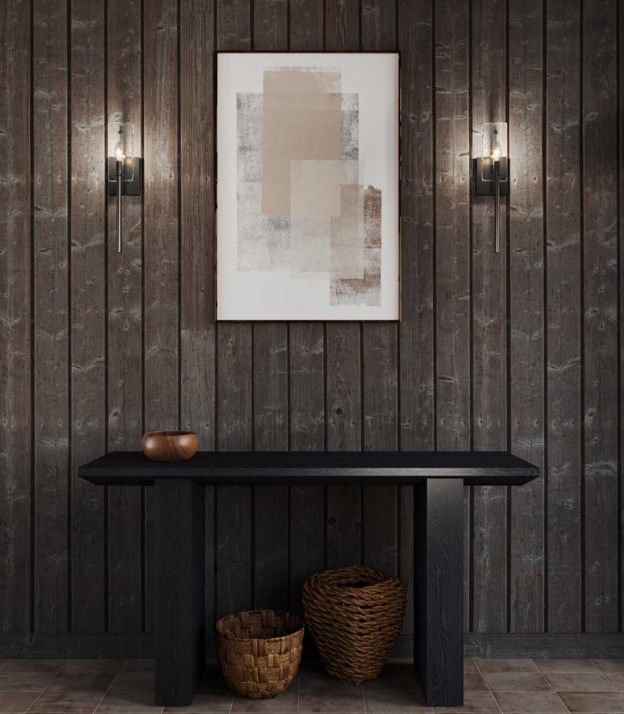 Linear elements and clear, textured glass accent modern farmhouse, luxe and urban industrial designs