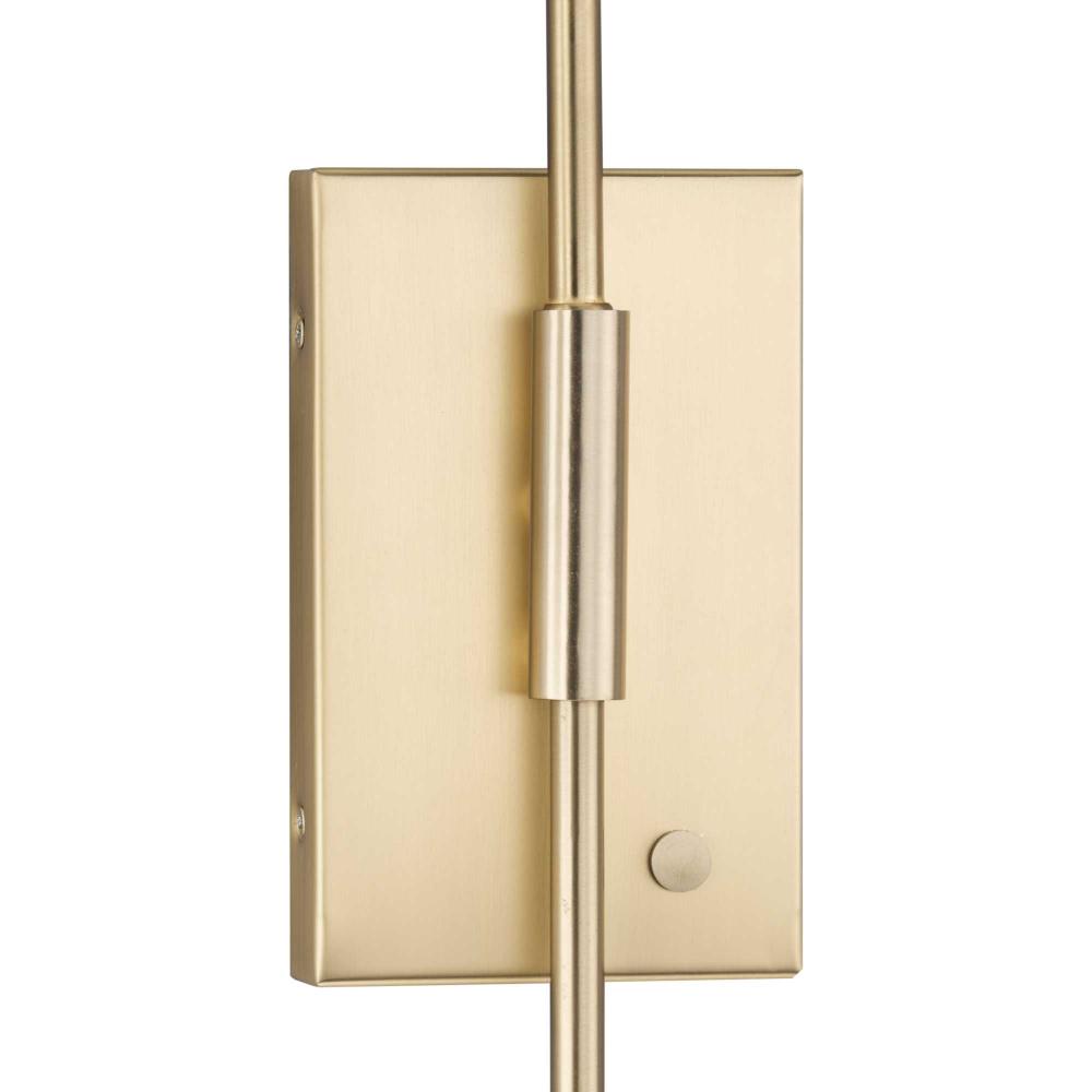 Cornett trumpets its arrival on the scene with a blending of timeless modern design. The swing arm sconce features dynamic angles finished in Brushed Gold, offering a dramatic counterpoint to the softly sculpted curves of the matching metal reflector shade.Light is directed out and downwards from its unique, curved construction.