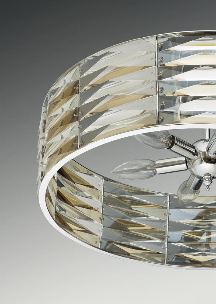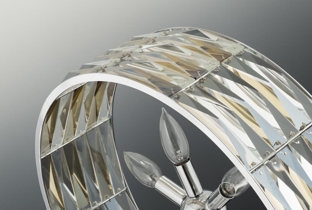 With alternating clear and champagne tinted K9 glass accents, The Pointe celebrates the element of sparkle through a sophisticated and glamorous design. A variety of fixtures can be intermingled within the same environment for a creatively modern and elegant effect. Five-light Square Pendant.