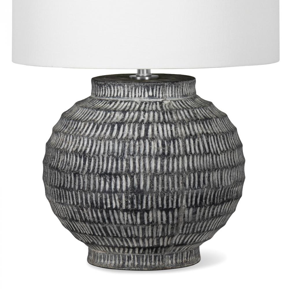 The Adobe Ceramic Table Lamp features hand-scribed chisel marks along with a natural color palette that gives the feeling it was excavated from an archaeological site. The body of the lamp is large in scale, making this a substantial light source for any room in the house.