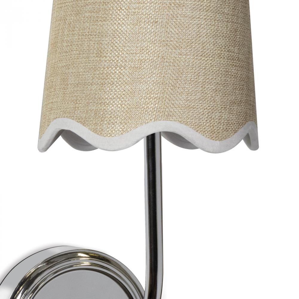 Bring the essence of a summer escape to any room with the Ariel Sconce. Smooth curves and a polished design make this sconce an unexpected classic, while the woven shade and scalloped linen trim add an element of serenity to your coastal retreat.
