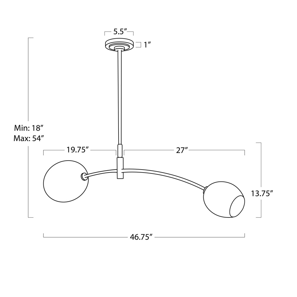 The Artemis Double Pendant masterfully balances simplicity with artisanal craftsmanship, featuring open-ended, alabaster like glass globes elegantly positioned at each end of its mobile-inspired, arched arm in oil rubbed bronze finish. This striking fixture exudes a modern vibe, making it a standout addition to any space.