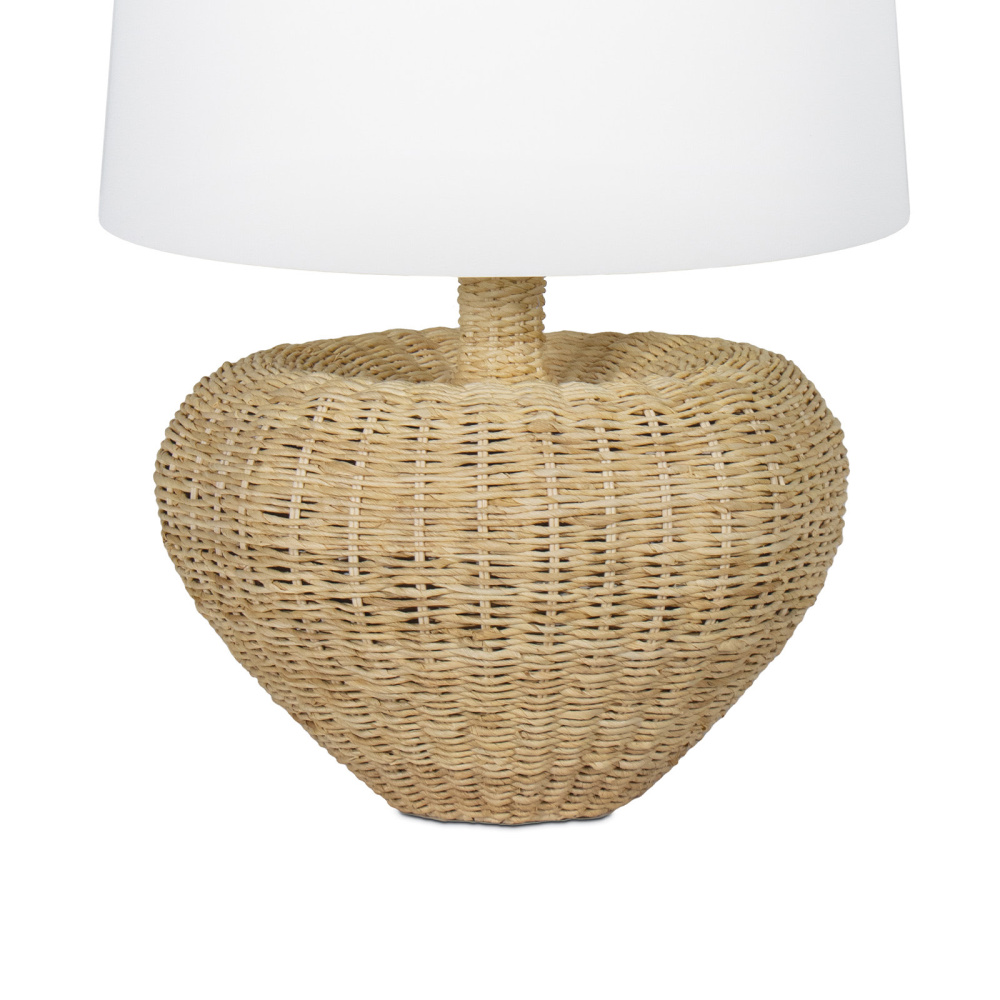 Illuminate your space with the Avery Lamp, showcasing a base with soft, heart-like curves and a sleek, elongated neck that supports a crisp white shade. Its intricately woven rattan body adds natural texture and warmth, making it ideal for coastal homes or any room in need of a sophisticated, neutral touch. The Avery Lamp blends artistry and elegance, offering a refined addition to your decor.