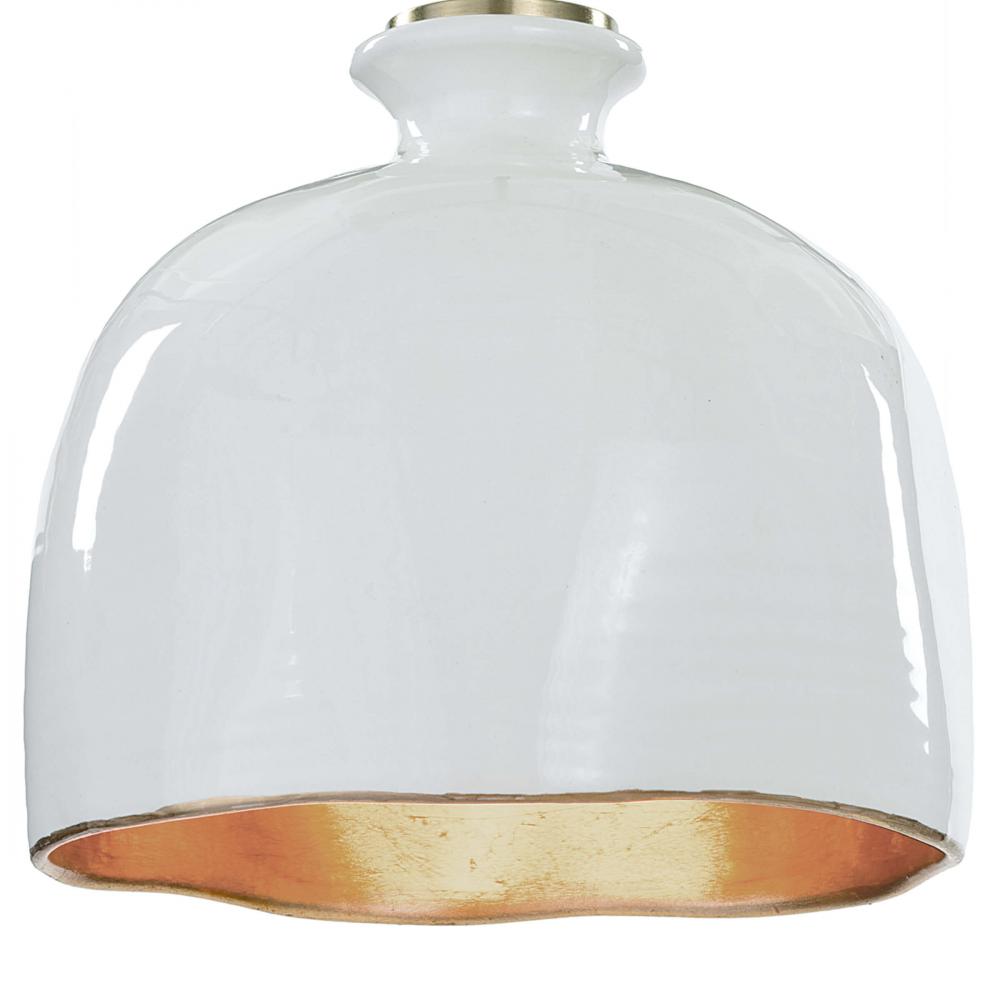 Crafted of ceramic with brass accents, the Bianca ceramic pendant makes a striking statement overhead with a radiant gold interior to enhance its elegant impact. The finish makes this pendant the right choice for many spaces – from kitchens to hallways to modern living and dining room.