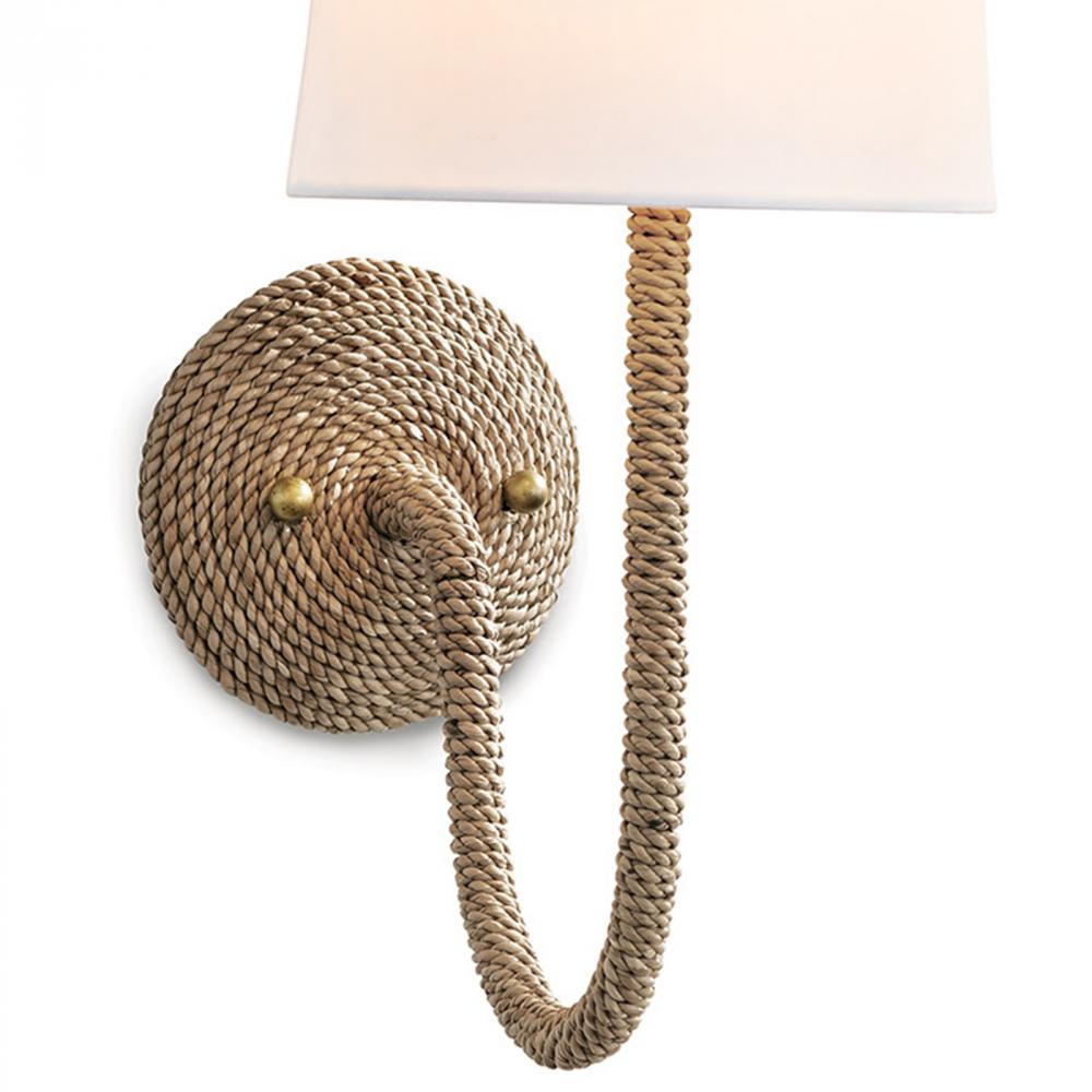 Natural woven seagrass provides a "washed ashore" look on the Bimini sconce. Looped detailing provides a nautical touch, while a natural linen shade tailors the look. Install these in a hallway of a coastal or rustic home to tie its design together.