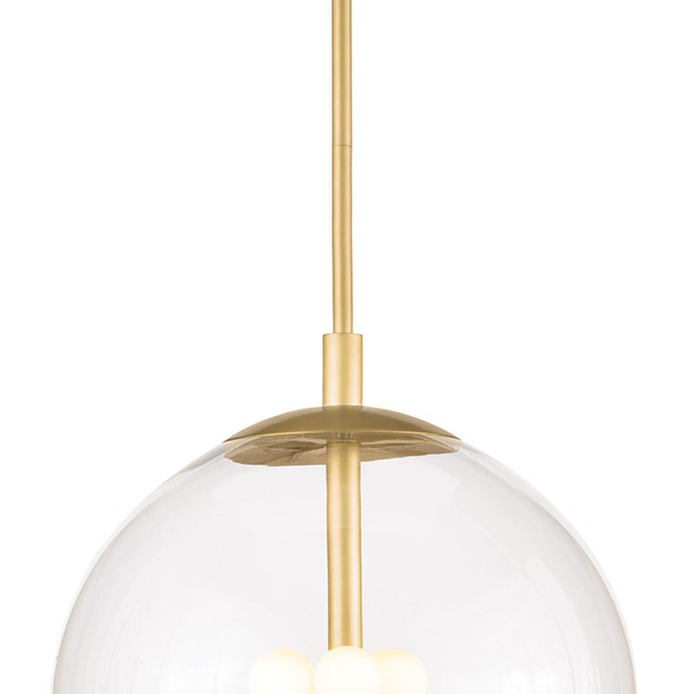The clear glass shade of the Cafe Pendant acts as a barely-there surround on the metal rod, column, and arms. The metal cap adds a refined finishing detail. Install this pendant in a kitchen or dining room for unobstructed illumination.
