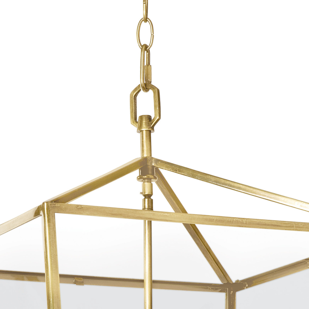 A timeless elegance, the Camden radiates refinement. This clean-lined lantern crafted of steel with a natural brass finish and clear glass panels brings depth and structure to any space.