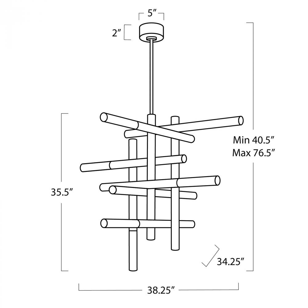 The Cass Chandelier is a modern interplay of vertical and horizontal arms adorned with frosted acrylic diffusers enclosing LED bulbs. With its striking presence and grid-like form, this chandelier takes center stage, elevating an entry, dining or living room.