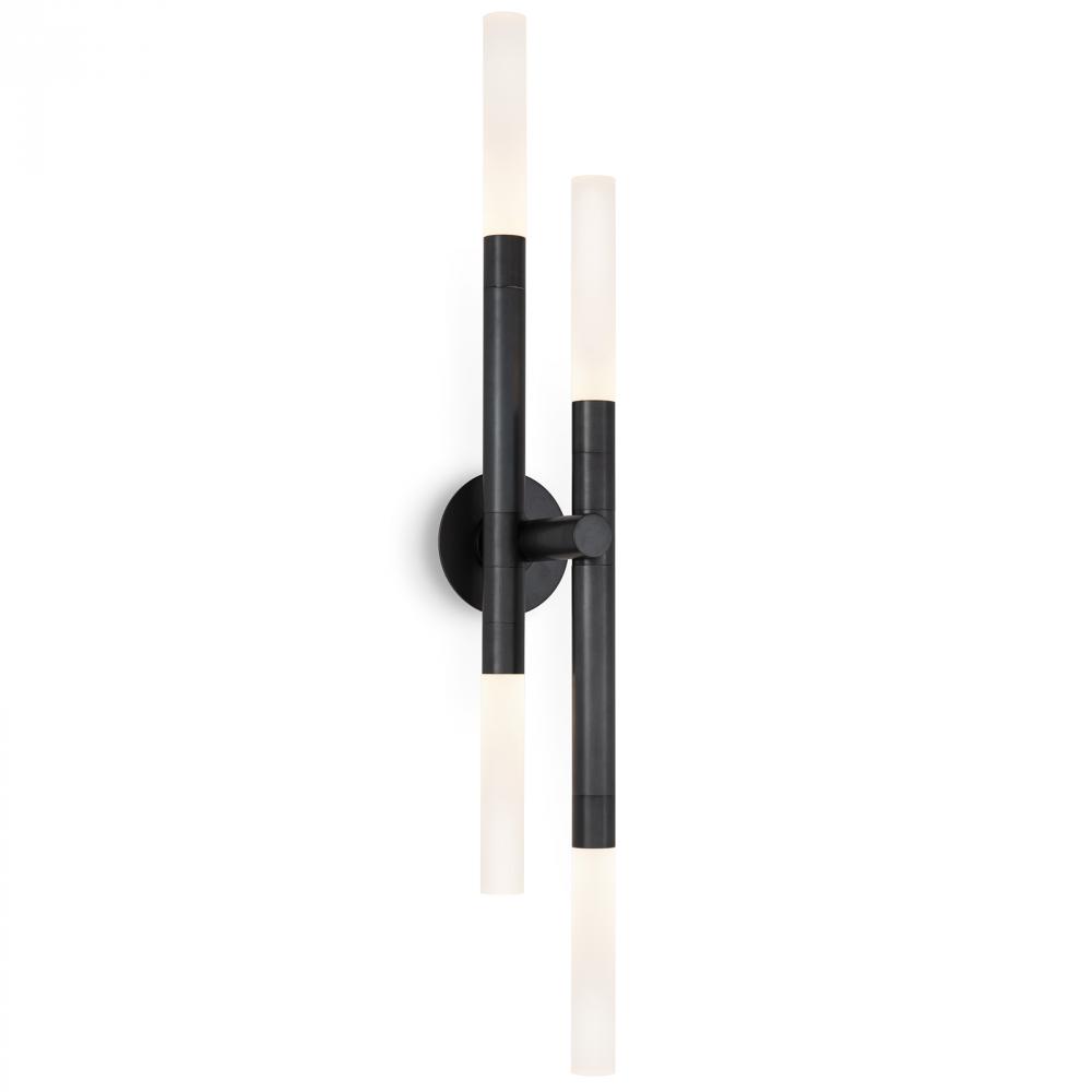 By design, the Cass Sconce is a sculptural piece of art for the wall and has the added benefit that the sconce arms can be rotated to the homeowners taste – whether intersecting, perfectly parallel or displayed up and down. Larger in scale, the Cass Sconce can become a focal point of the room while the frosted acrylic bulb covers add the perfect amount of diffused light.
