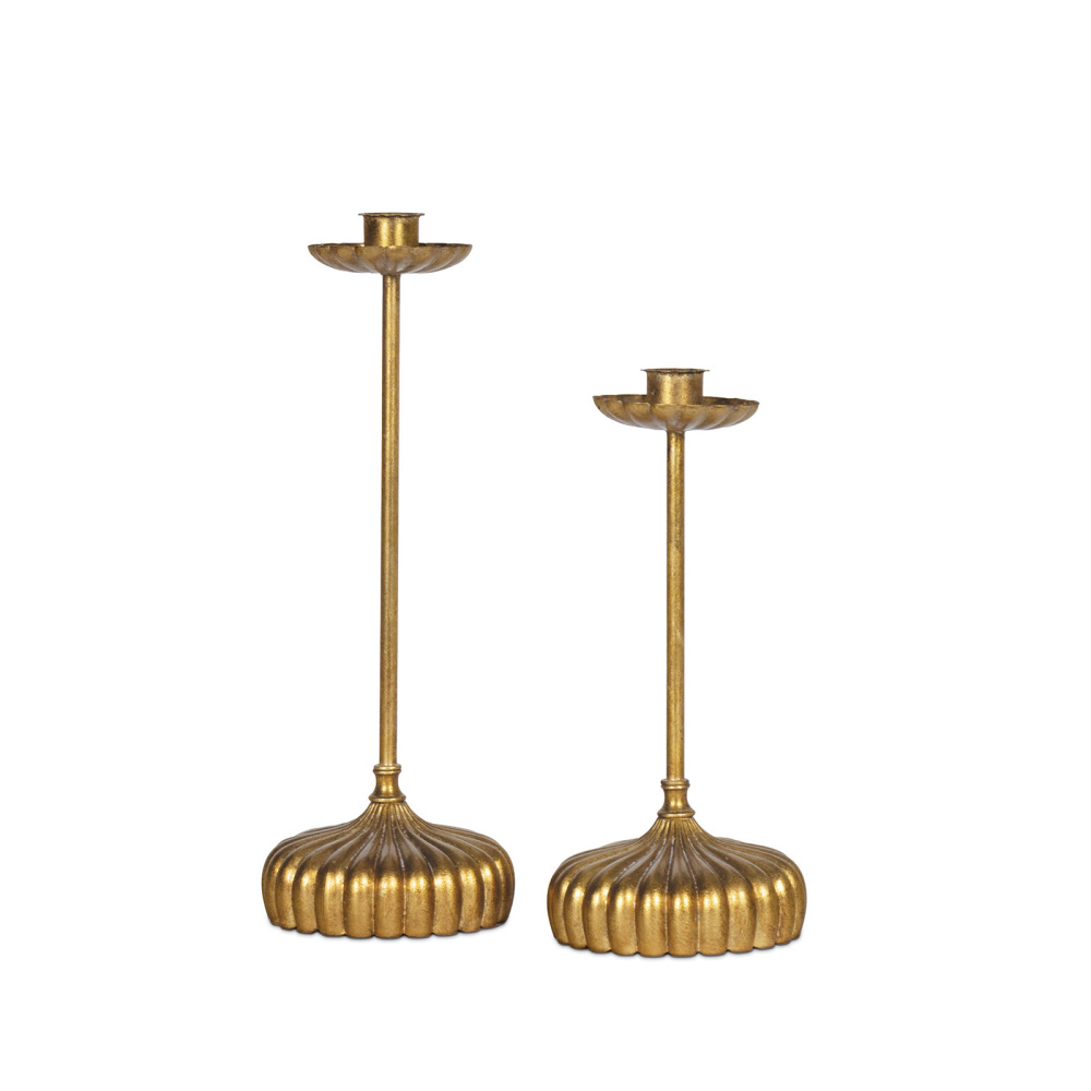 Introduce classic elegance to your home with the Clove Candle Holder Set. Each holder boasts antique-style candle cups with intricate bobeche detailing and dramatic antiqued gold bases. The varying heights create a balanced, multi-level effect, adding a refined and graceful touch to any room.