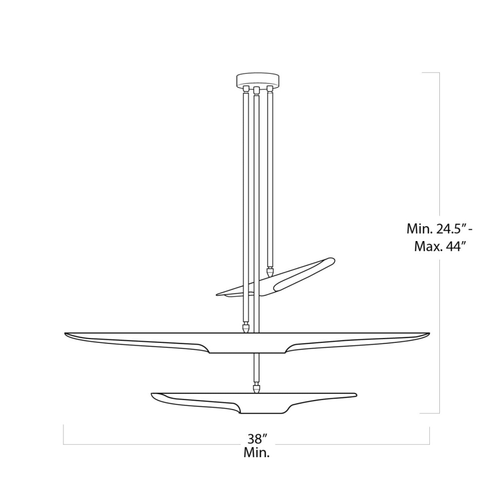The aerodynamic Concorde chandelier, inspired by a supersonic airliner, wears a sleek Blackened Iron finish with a contrasting gold leaf interior. This, in combination with its triple-tier silhouette, gives an air of contemporary luxury to your dining room or foyer.