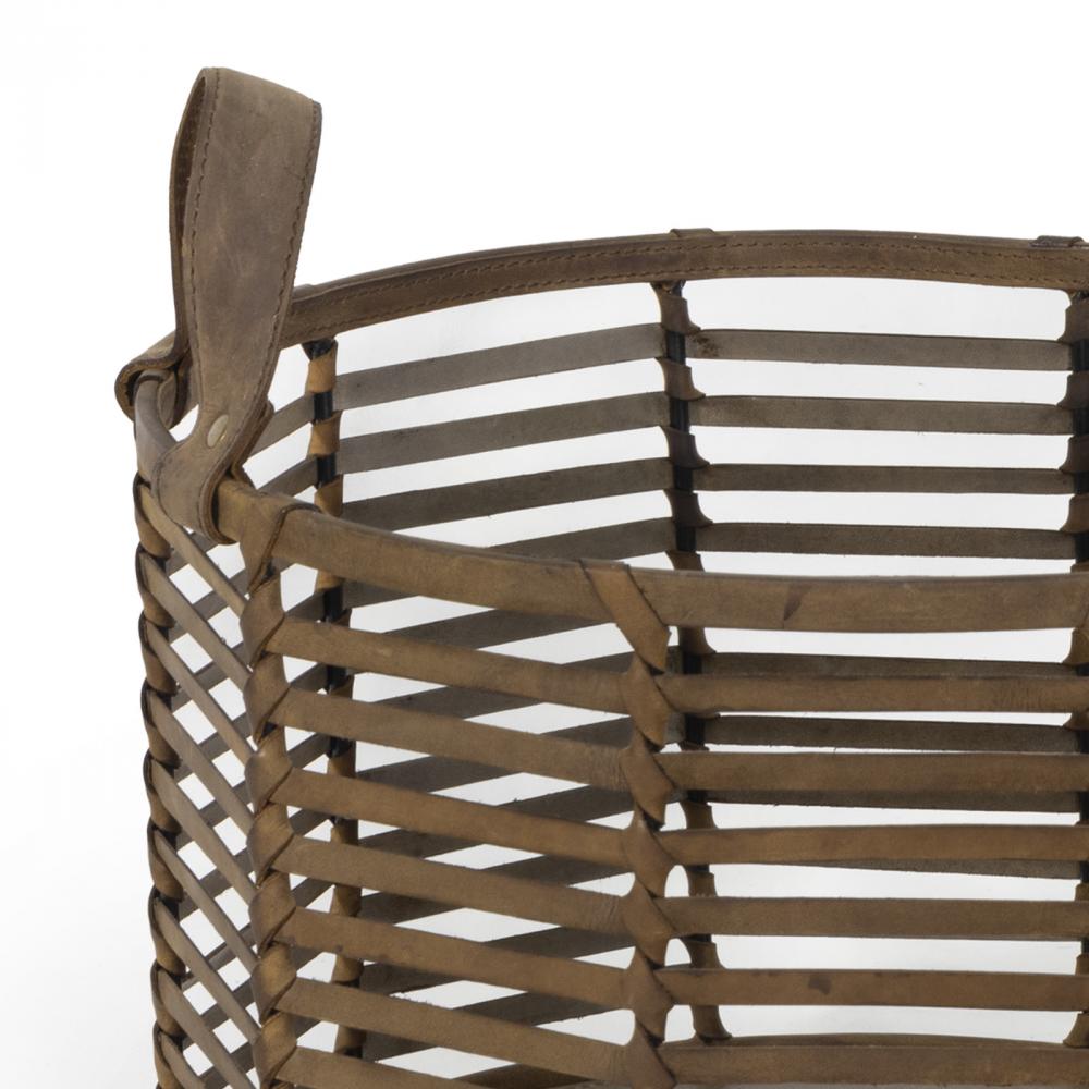 Blending form and function, this handsome basket is woven by hand from sturdy natural leather. The Finn is the perfect functional decor piece for your home. This basket can stand alone as sculptural decor thanks to the intricate pattern woven into its leather base when not holding blankets, magazines, or your pet's toys.