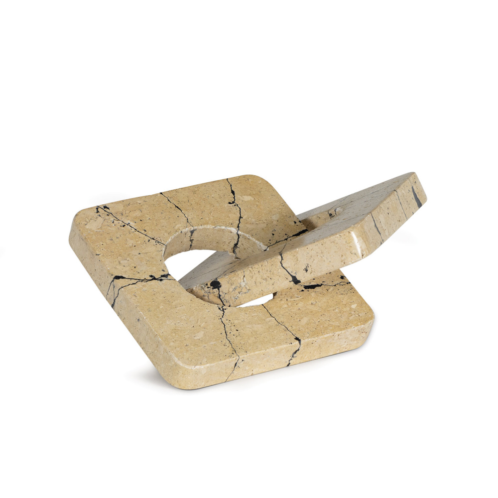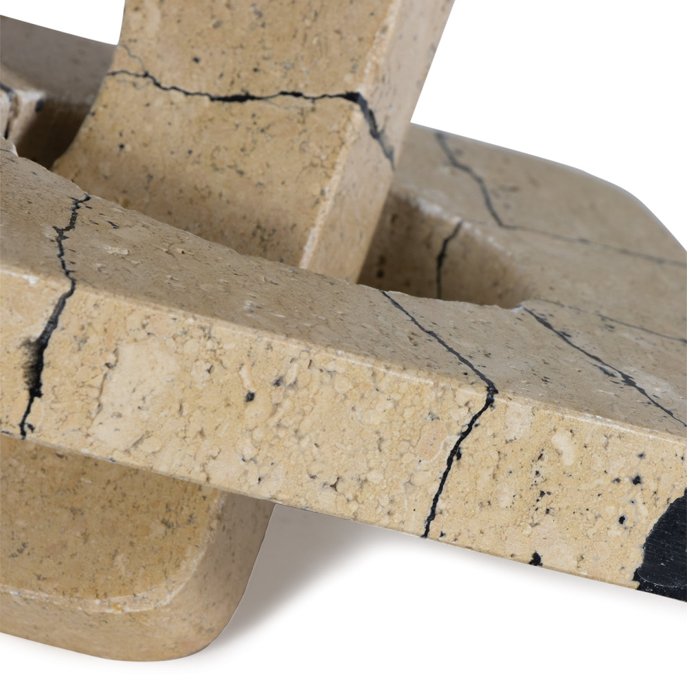 Each Gemini Marble Accessory, formed from travertine and finished by artisans, is unique and steeped in story. Made in the same tradition as Japanese Kintsugi, which joins together broken pottery to honor the beauty of repair – making the new piece stronger and more resilient than before. Use this piece to symbolize your own story and add interest to any tableau.