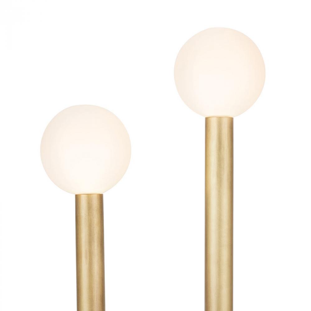 The Happy Table Lamp is a unique mix of modern and playful. Happy's simple, asymmetrical charm creates uplifting illumination perfect for an entryway, bedroom, or living space. The lamp's metal tube frame, cylindrical base, and contrasting matte white glass globes create an elevated take on a playful shape. Create the perfect amount of custom illumination in your space by using the lamp's dimmer switch.