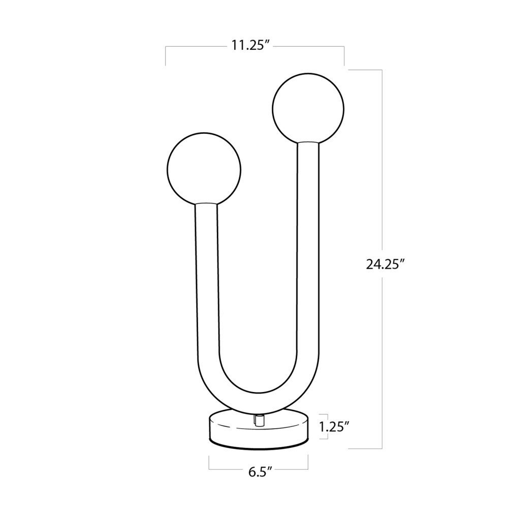 The Happy Table Lamp is a unique mix of modern and playful. Happy's simple, asymmetrical charm creates uplifting illumination perfect for an entryway, bedroom, or living space. The lamp's metal tube frame, cylindrical base, and contrasting matte white glass globes create an elevated take on a playful shape. Create the perfect amount of custom illumination in your space by using the lamp's dimmer switch.