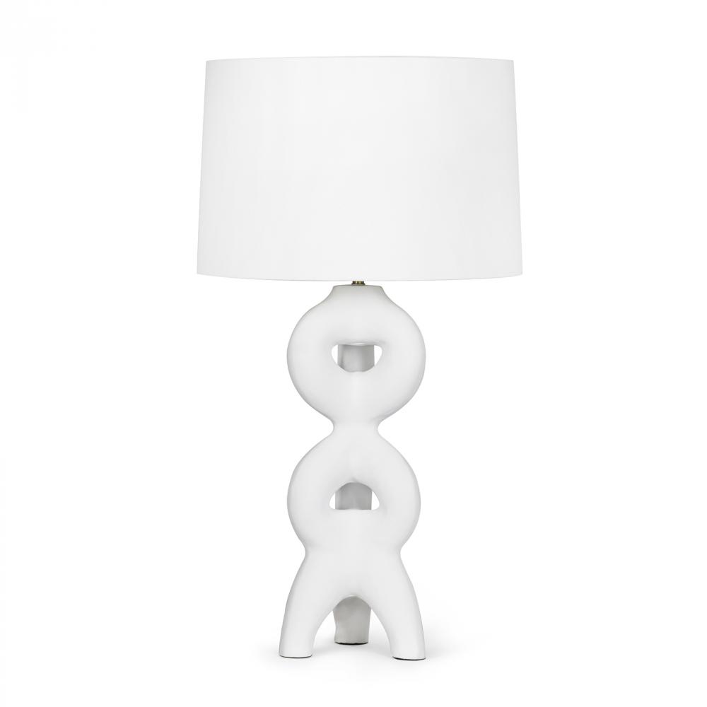 The Jacob Metal Table Lamp has a unique, sculptural shape paired with a white, plaster-like finish. Think folk art with a modern twist. Complemented by a crisp, natural linen shade and natural brass fittings, the Jacob Table Lamp would sit beautifully in a living room, home office or bedside tables.