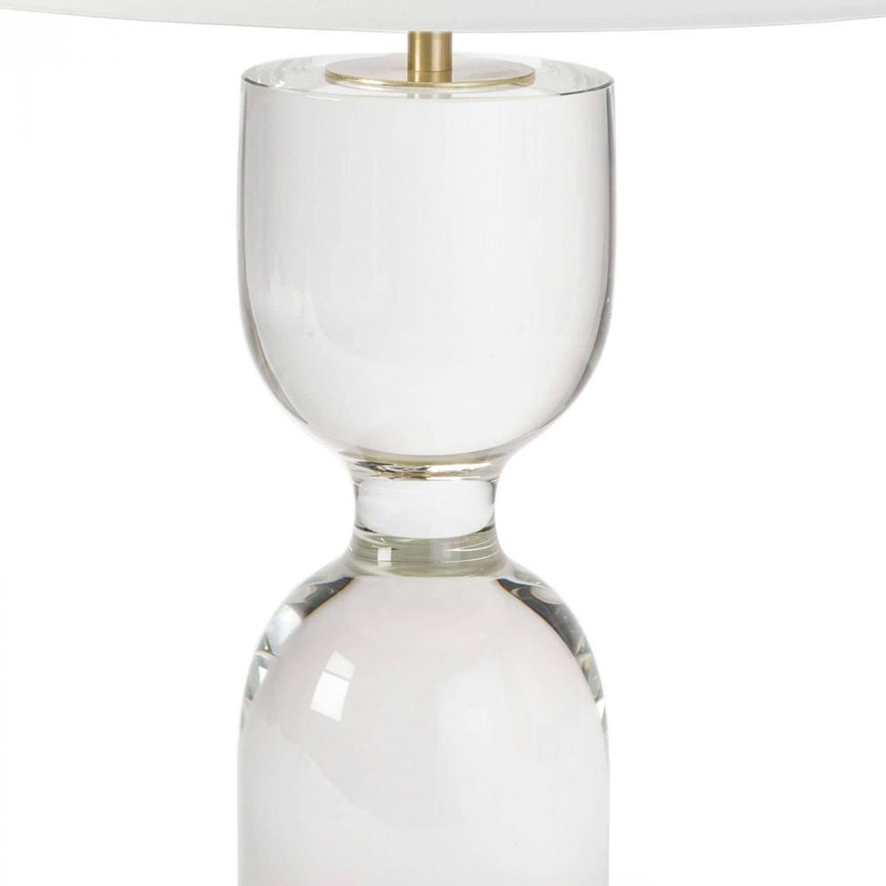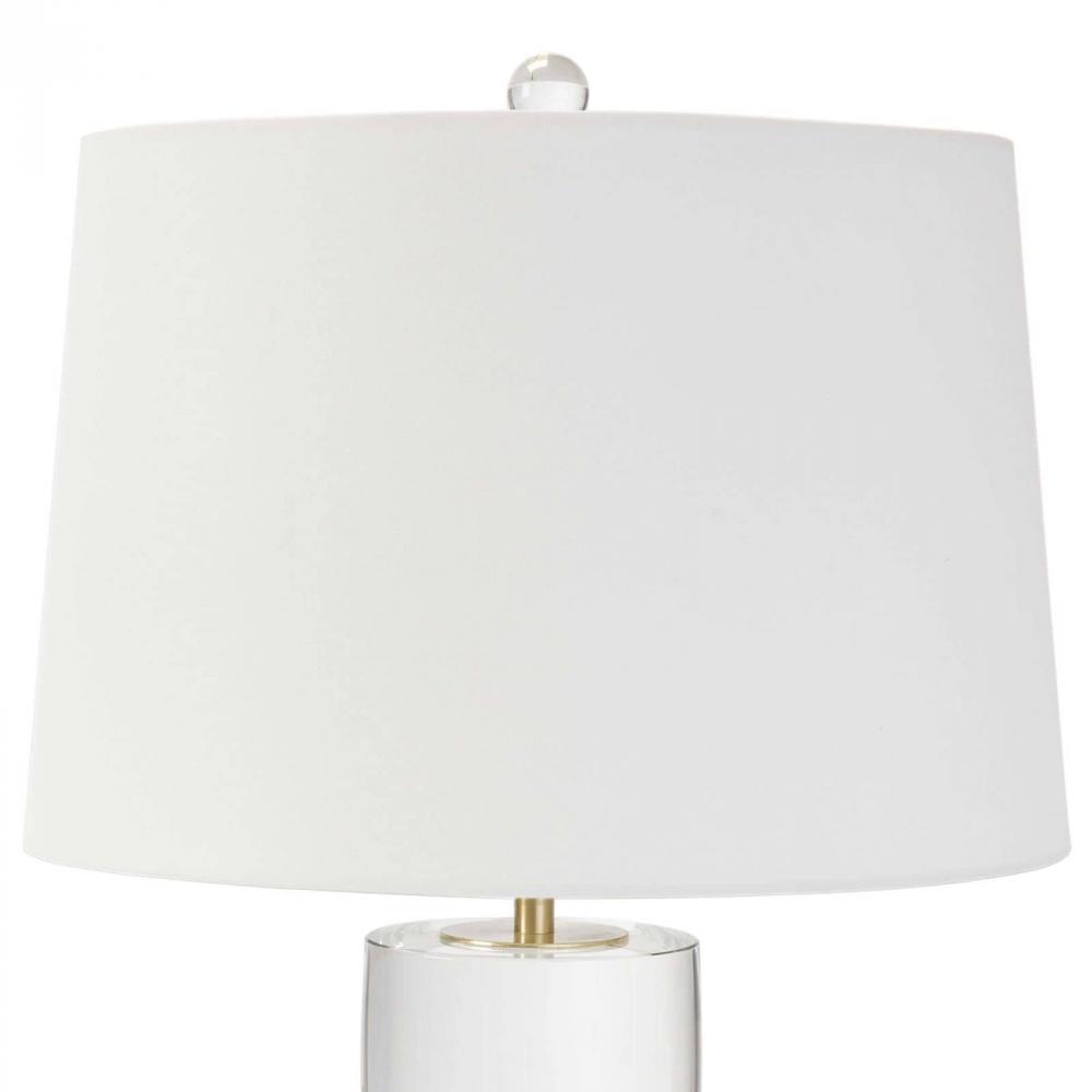 With its reflective crystal body and matching finial, the Joan Table lamp is a modern classic. This solid crystal silhouette and natural brass accents will add a bit of glamour to your home.