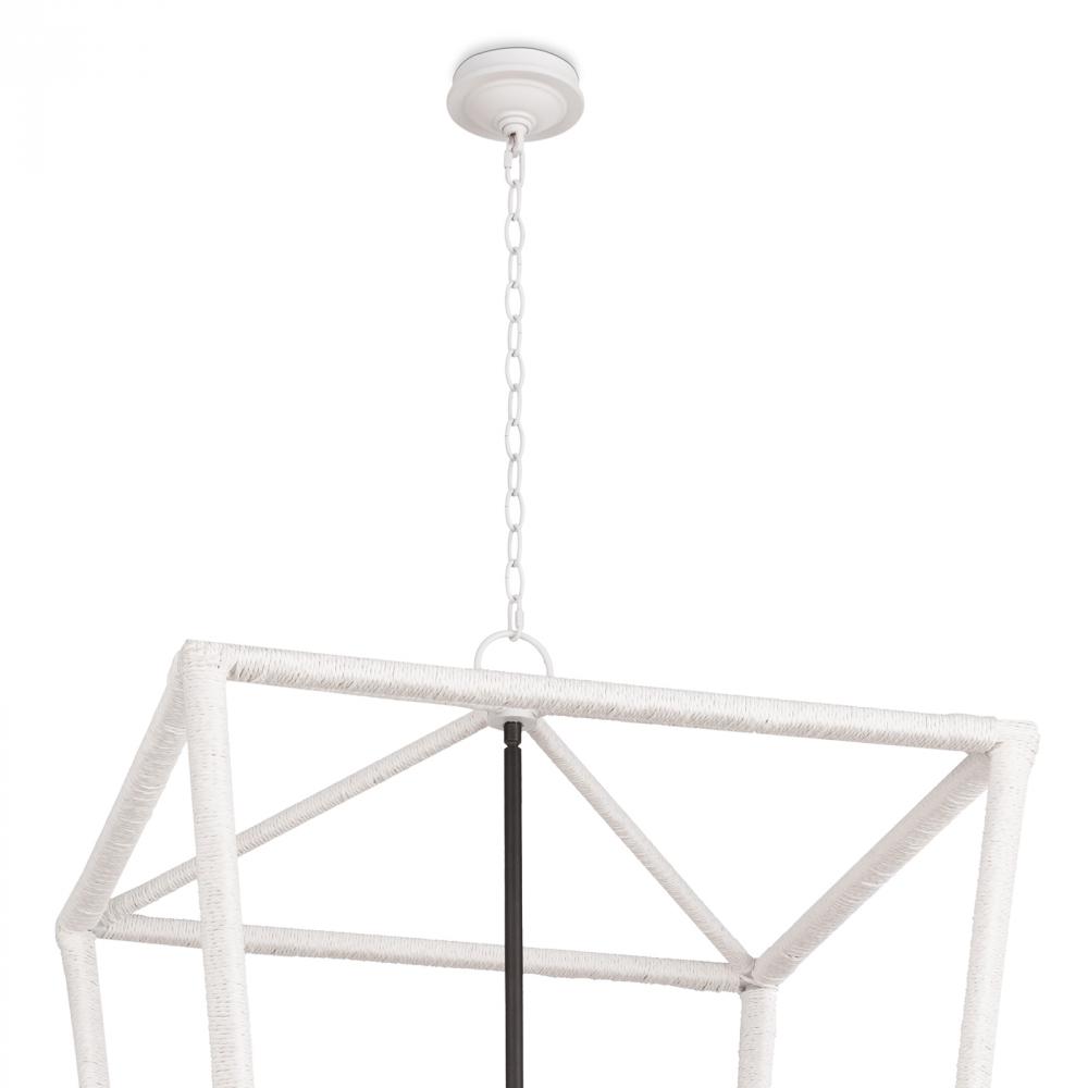 A twist on the traditional lantern, the Luella has a uniquely textured white finish. Elegant, blackened brass candelabra lighting on the interior creates an unexpected statement in your foyer, living room, or dining room.