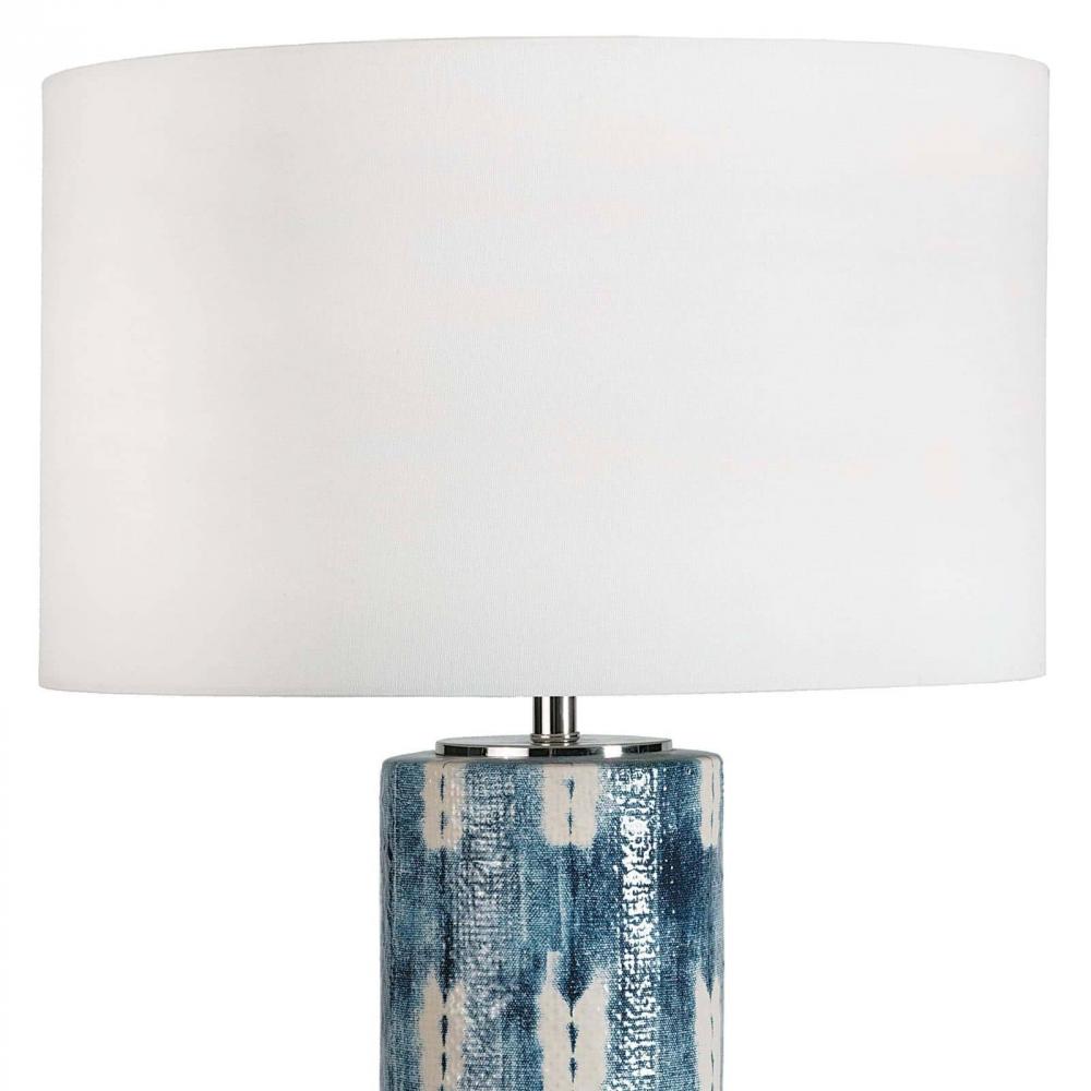 The Mali ceramic table lamp has a fresh and modern take on the classic blue and white mix. The crystal base serves as an elegant platform for the lamp's dramatic scale and shibori-inspired finish. A natural linen shade, rounded and rolled by hand, is topped with a round polished nickel-finished finial.