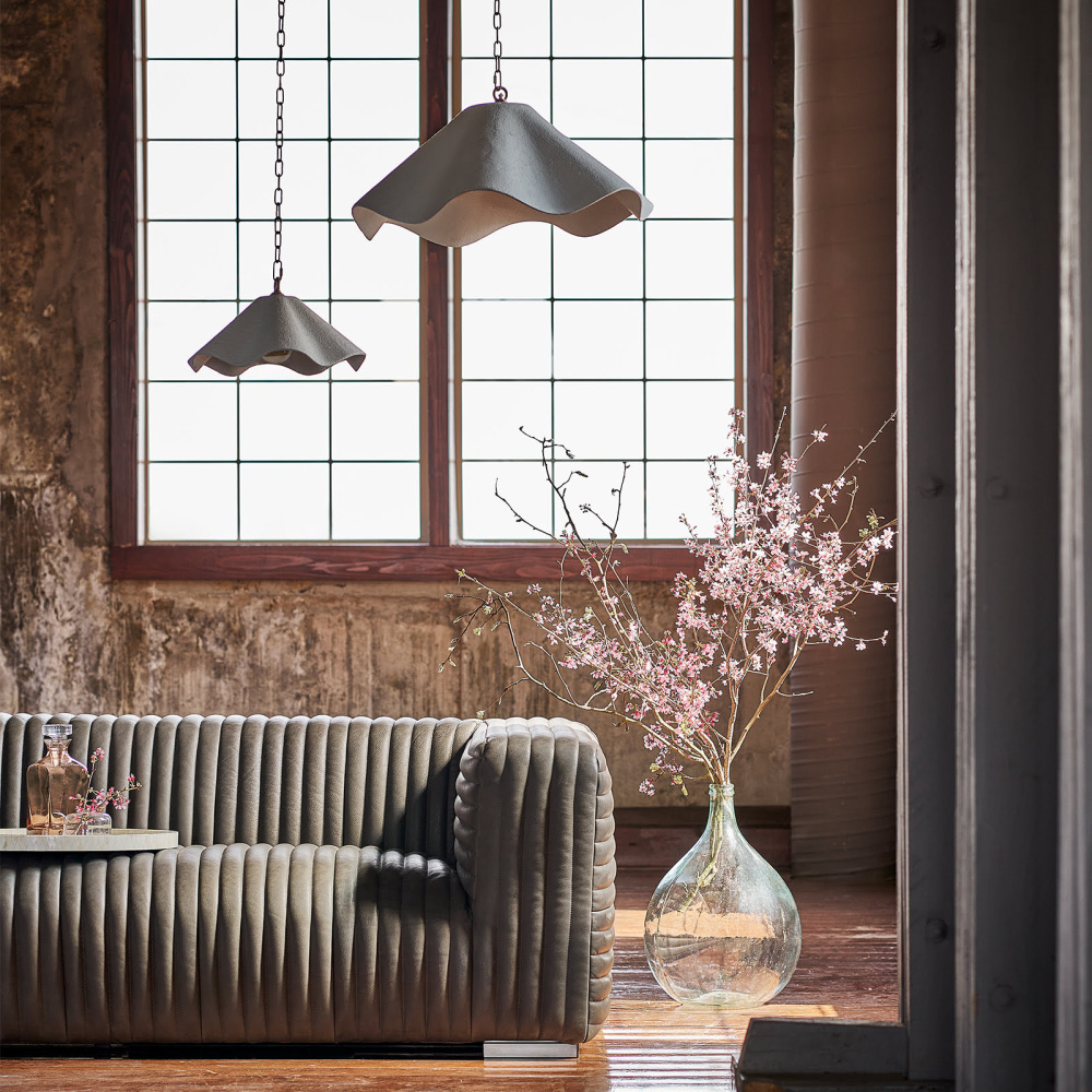Inspired by the iconic Swiss-designed handkerchief planters but reinterpreted in a delicate feminine twirl. Our small metal Marisol Pendant, in matte white, appears to float weightlessly in mid-air. At 15 inches wide, it’s the perfect petite piece for smaller spaces or in multiples, fluttering above a kitchen island.