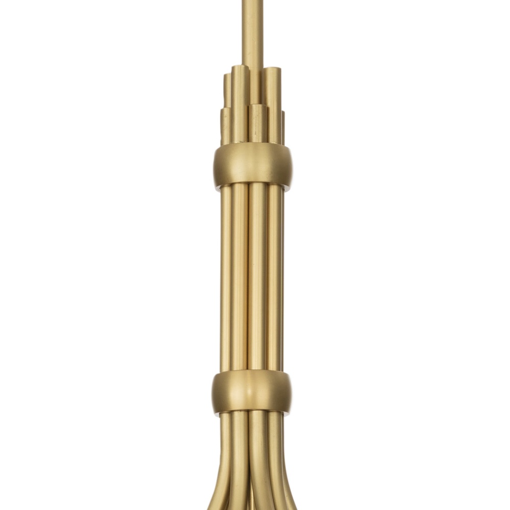 A beautiful blend of art and design inspired by the delicate form of a blossoming bouquet. Its fluted glass shades, cast a radiant glow, while the steel framework in a natural brass finish adds a contemporary touch. This chandelier is a sculptural statement piece, infusing sophistication, elegance, and artistic charm.