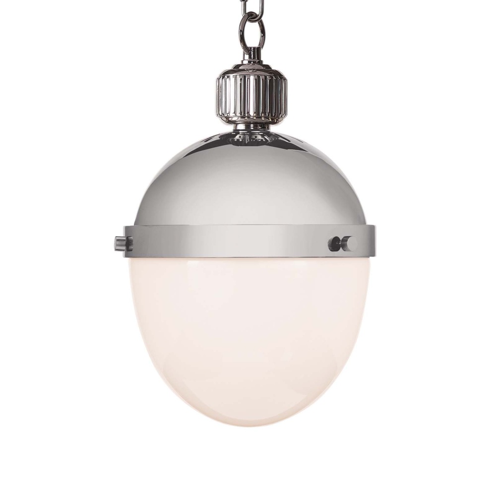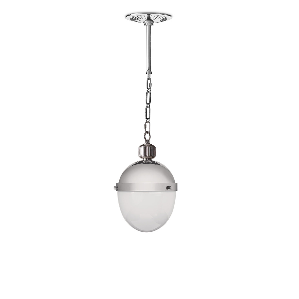 Our Otis Pendant Small blends 20th-century style with modern materials for a timeless look—in a compact size that integrates with any space or style. Classic milk glass gives a soft, diffuse light that is gentle on your eyes. It's the perfect way to add a warm glow over a breakfast nook or kitchen island. Clean polished nickel pairs beautifully with white marble and surfaces with cool undertones.