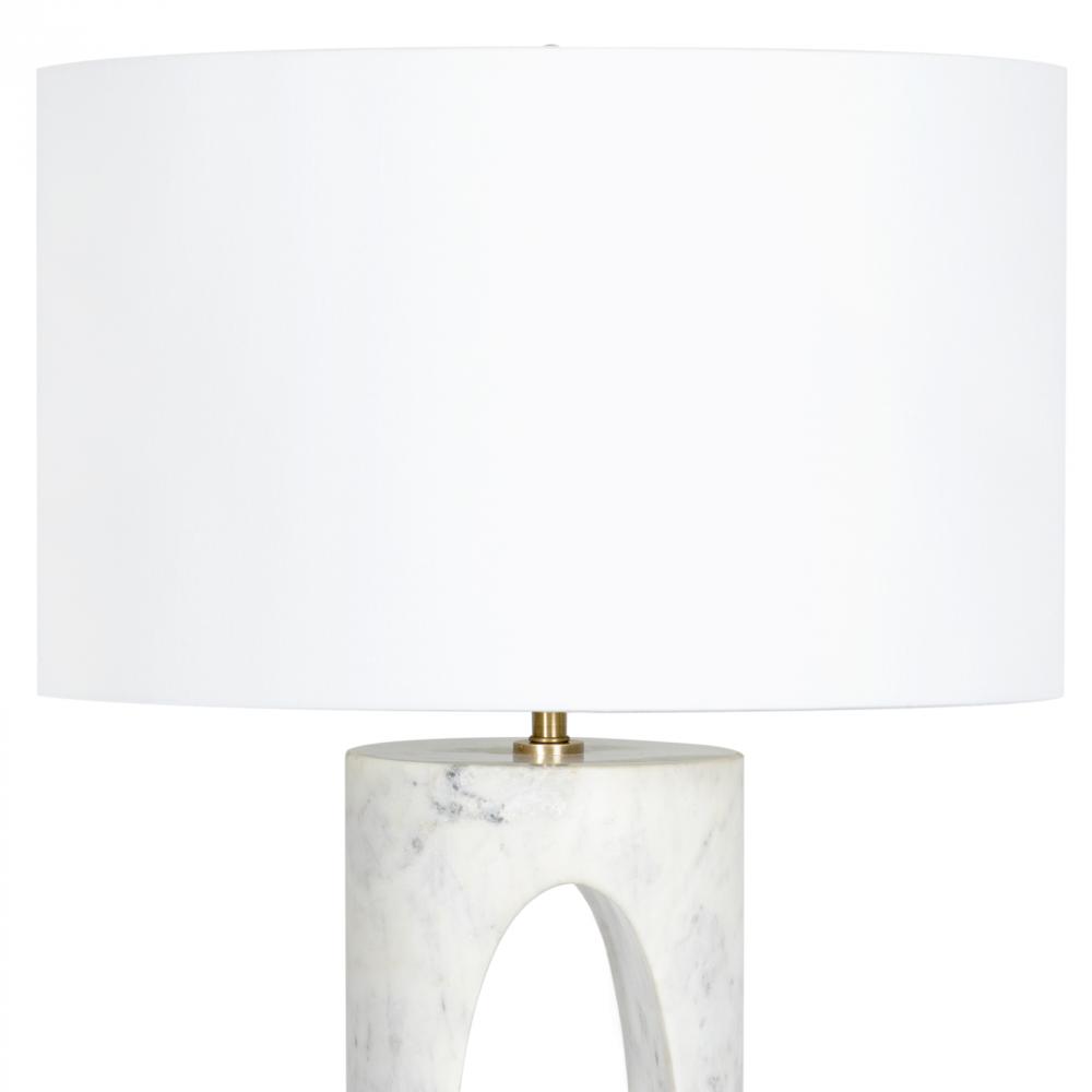 The Portia Marble Table Lamp is crafted with a stunning natural white marble with lavender-toned veining. Its captivating form draws attention as a sculptural work of art. Paired with a natural linen shade and natural brass components, the Portia would be a stunner in a living room, home office, or in an entryway.