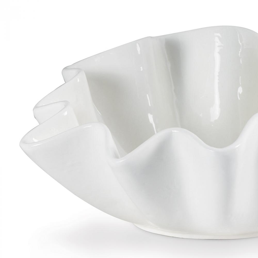 This bowl was carefully crafted by skilled craftsmen who have mastered the technique of creating timeless ceramics. With its creamy white finish and ruffled edges it will playfully interact with any space.
