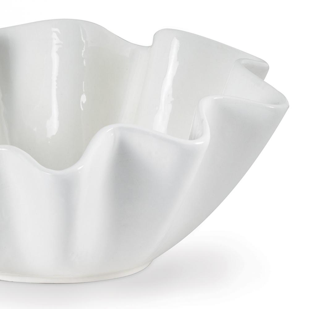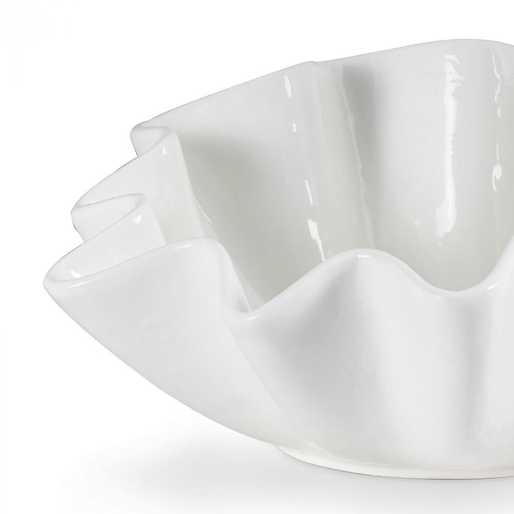 This bowl was carefully crafted by skilled craftsmen who have mastered the technique of creating timeless ceramics. With its creamy white finish and ruffled edges it will playfully interact with any space.